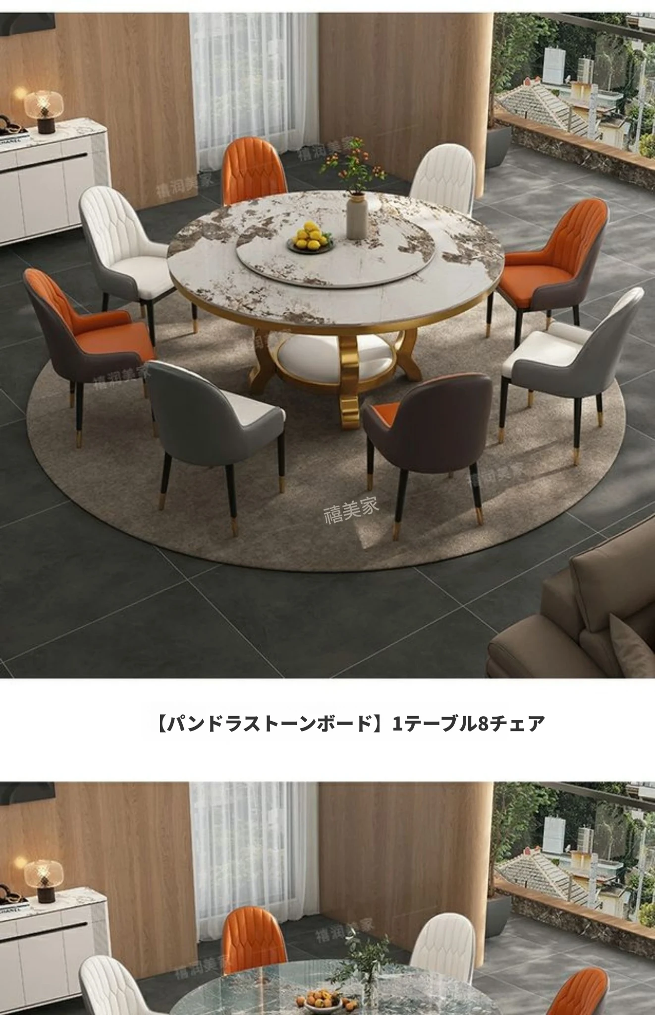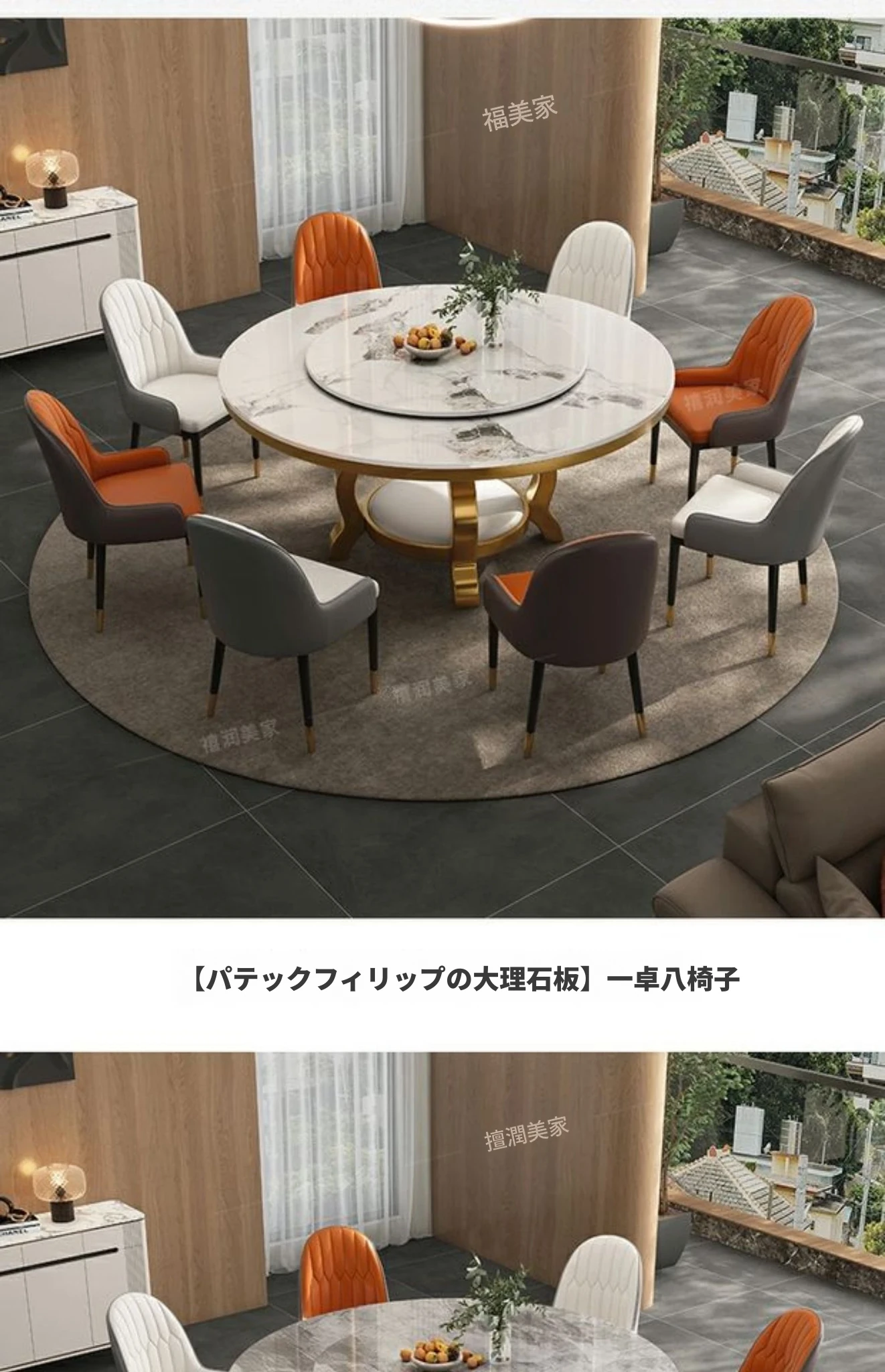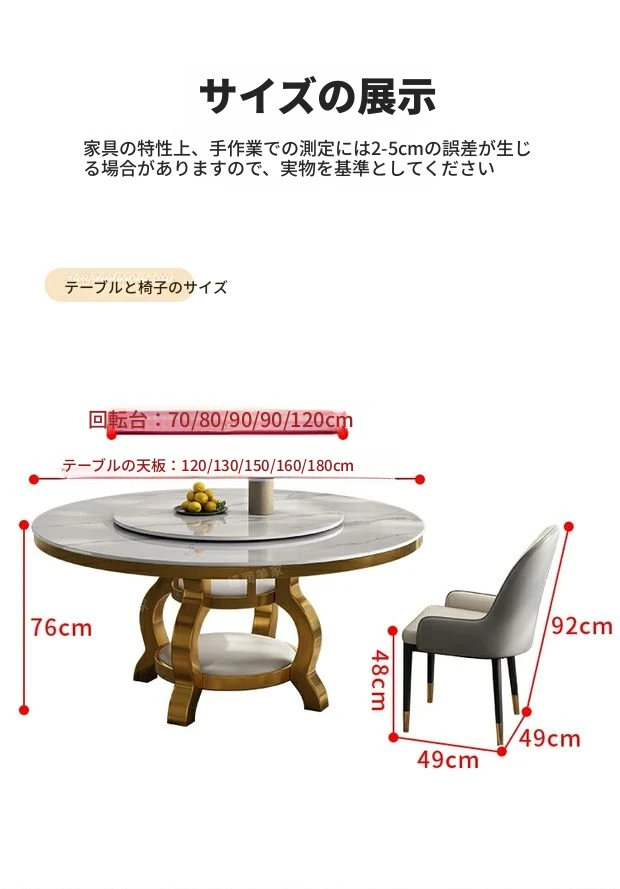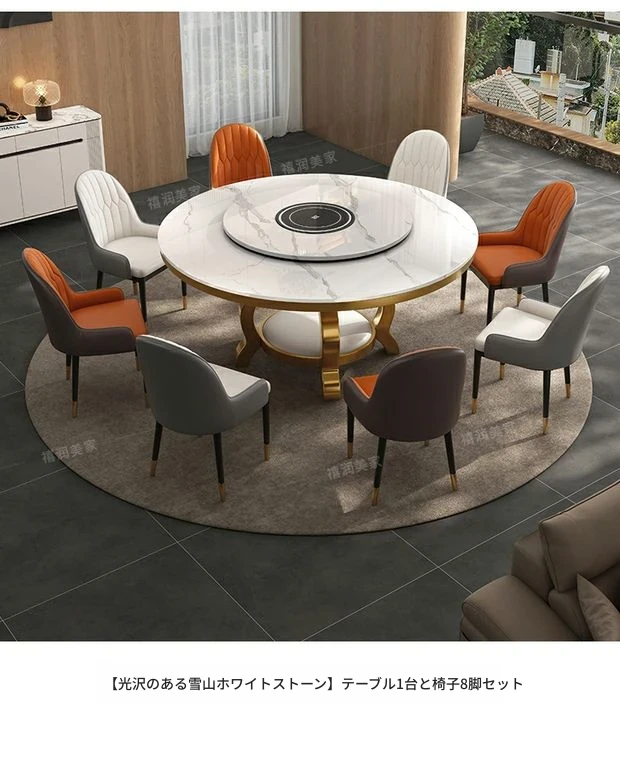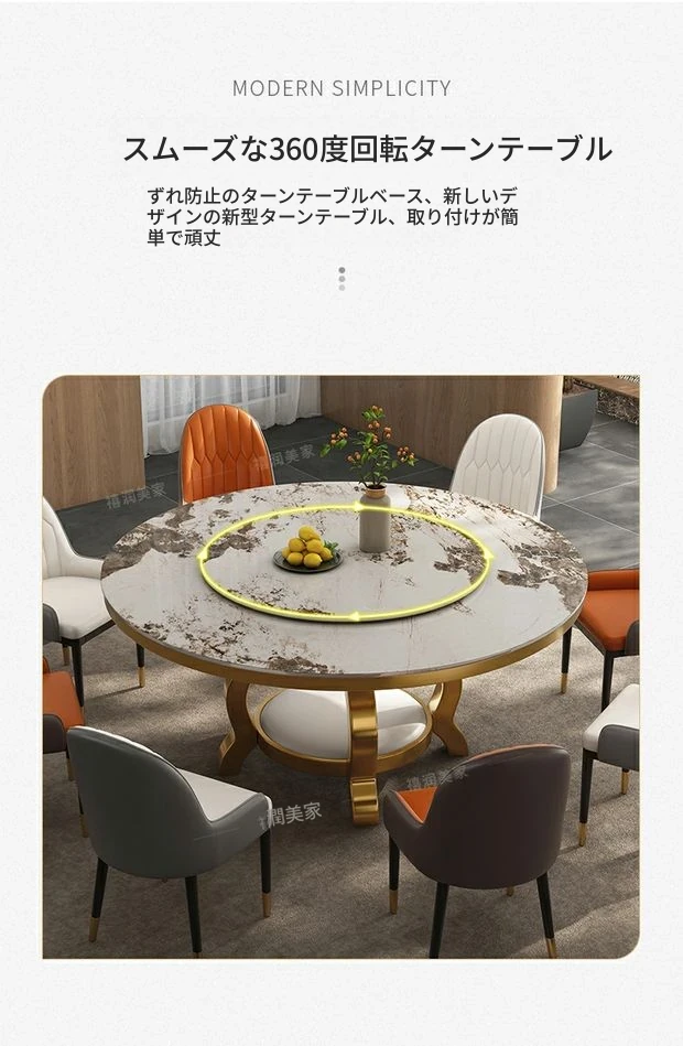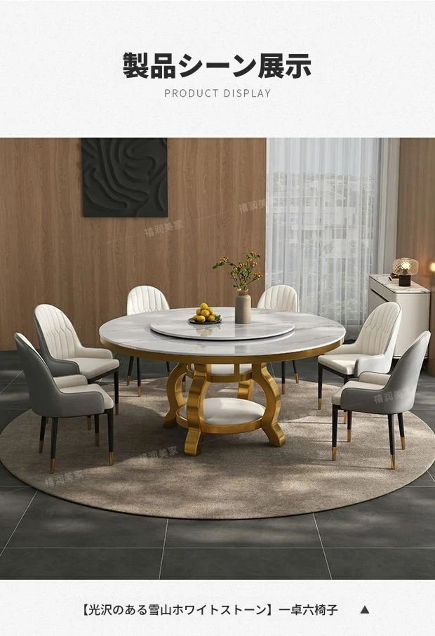 高級感溢れる大理石円形ダイニングテーブルセット - シンプルでモダンなデザイン、回転プレート付きで使い勝手抜群!家庭用に最適なラグジュアリーな食卓をお楽しみください。