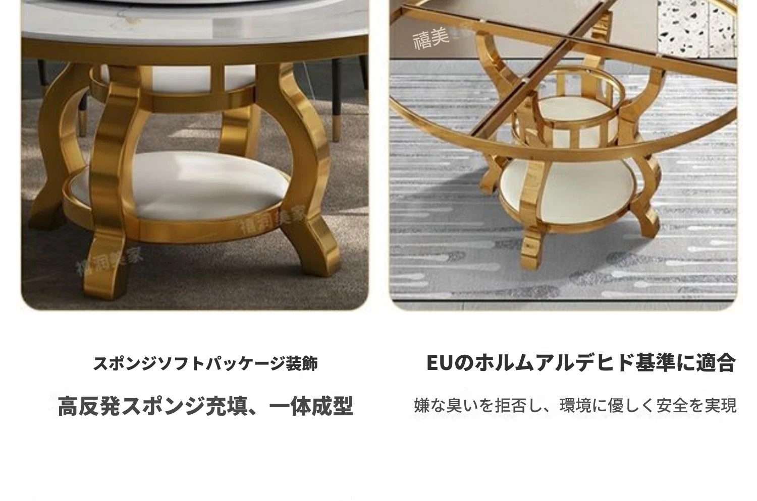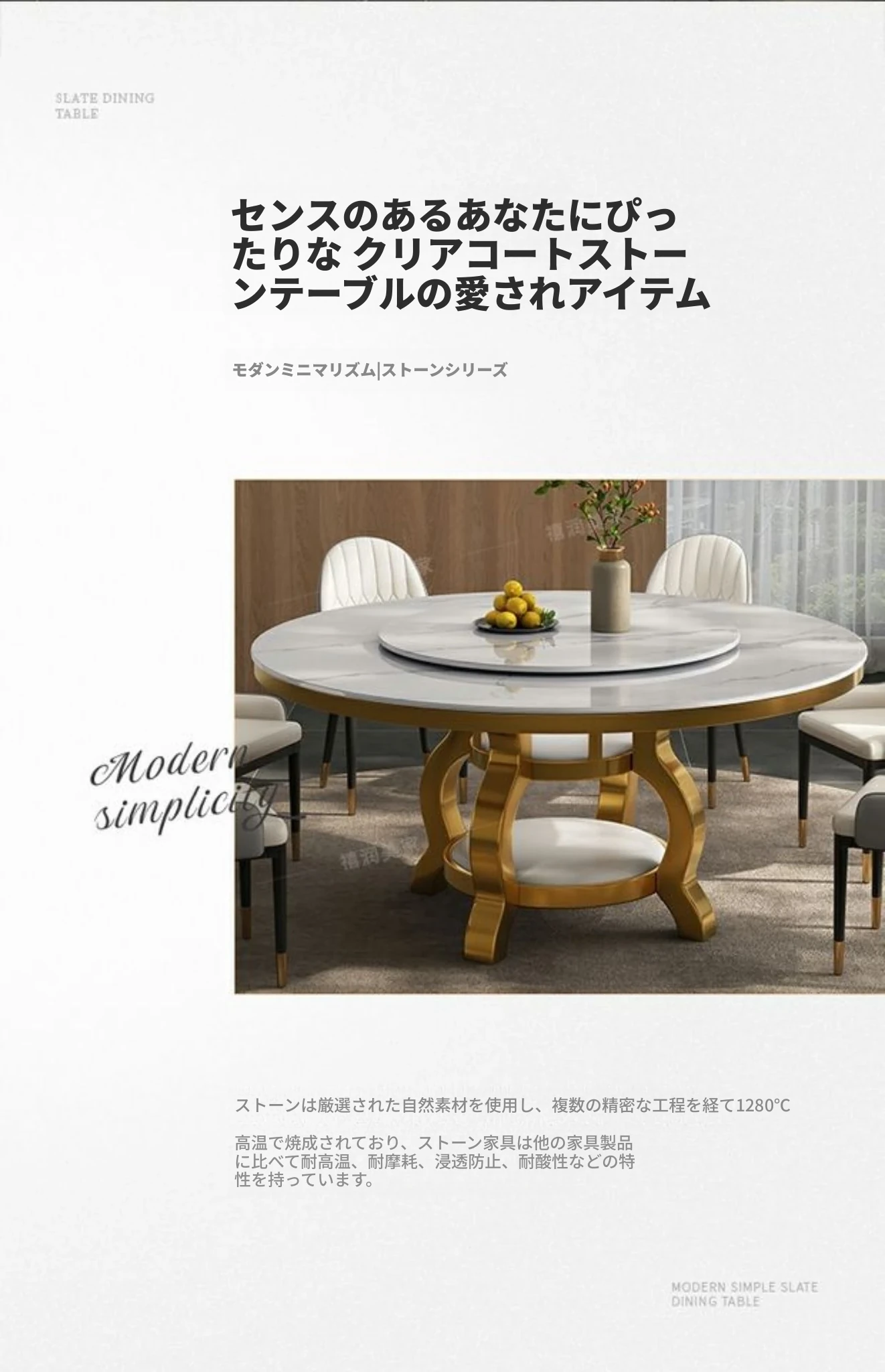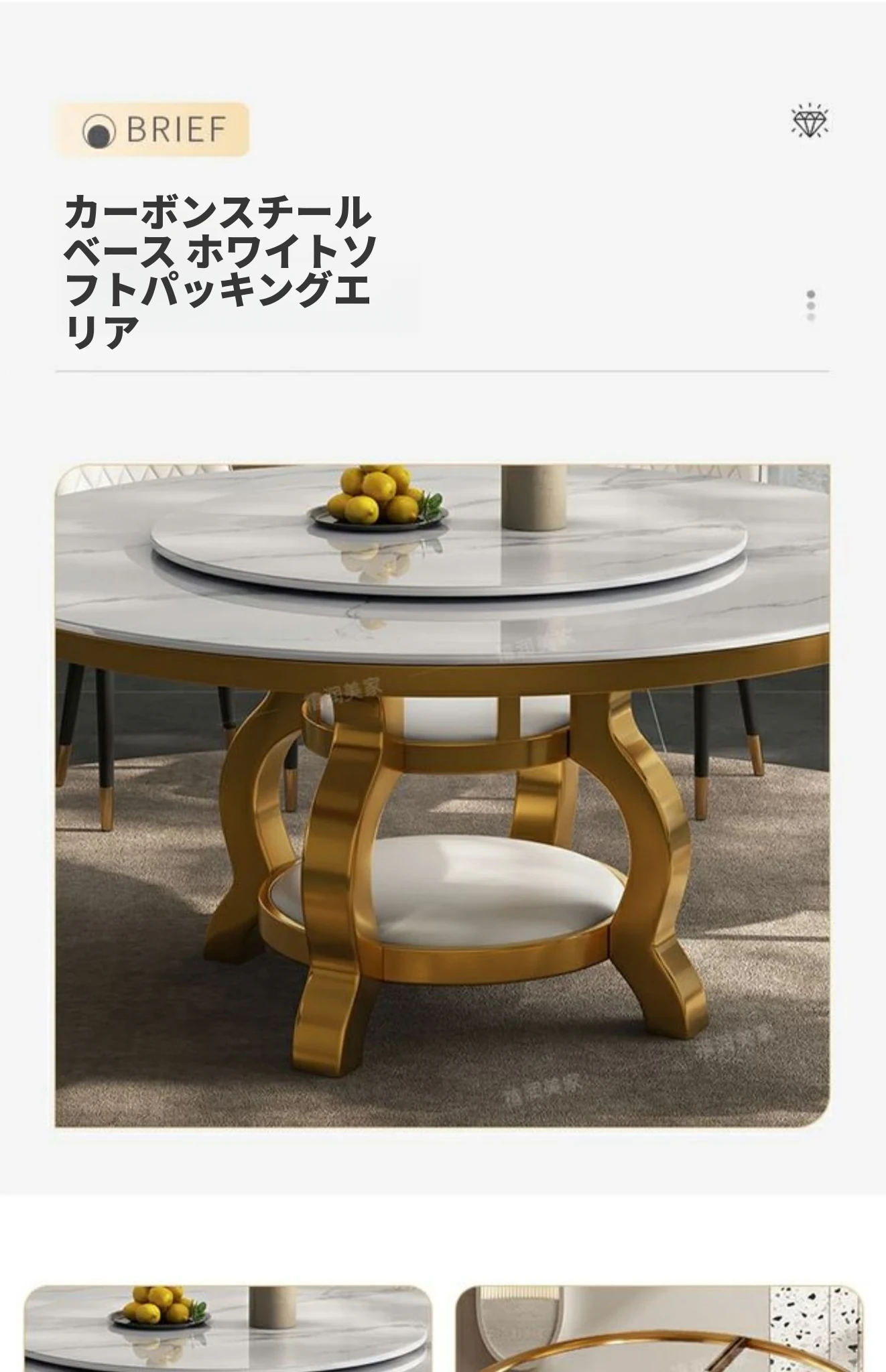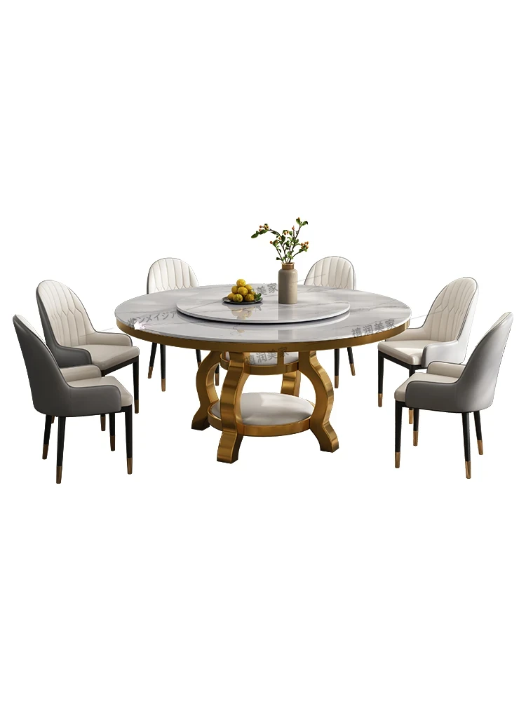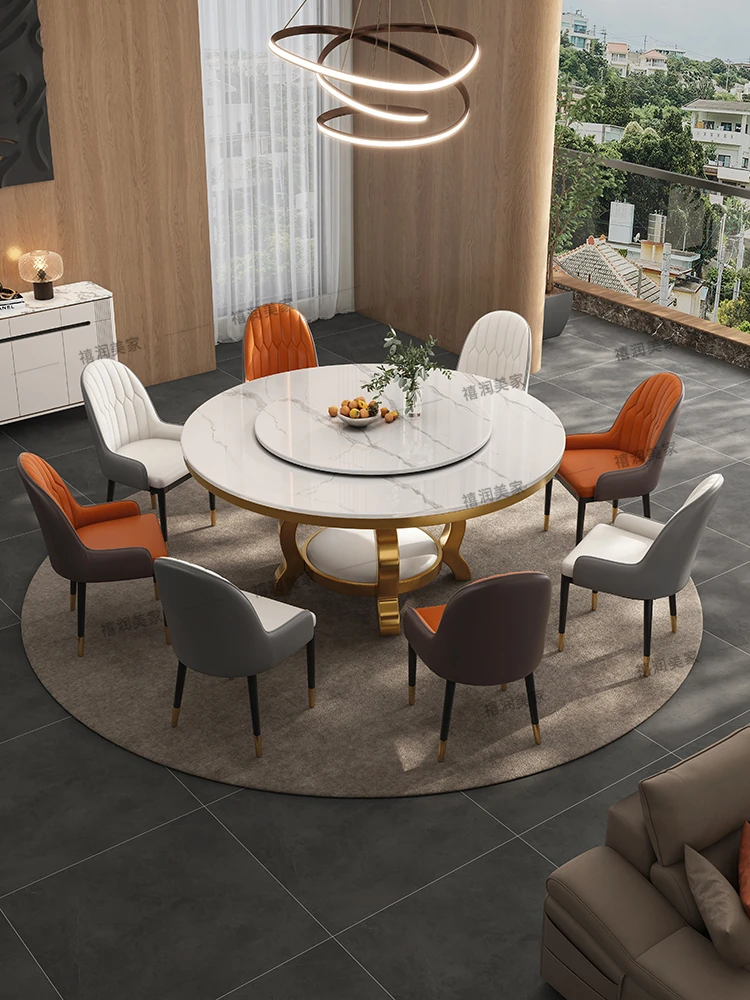 高級感溢れる大理石円形ダイニングテーブルセット - シンプルでモダンなデザイン、回転プレート付きで使い勝手抜群!家庭用に最適なラグジュアリーな食卓をお楽しみください。