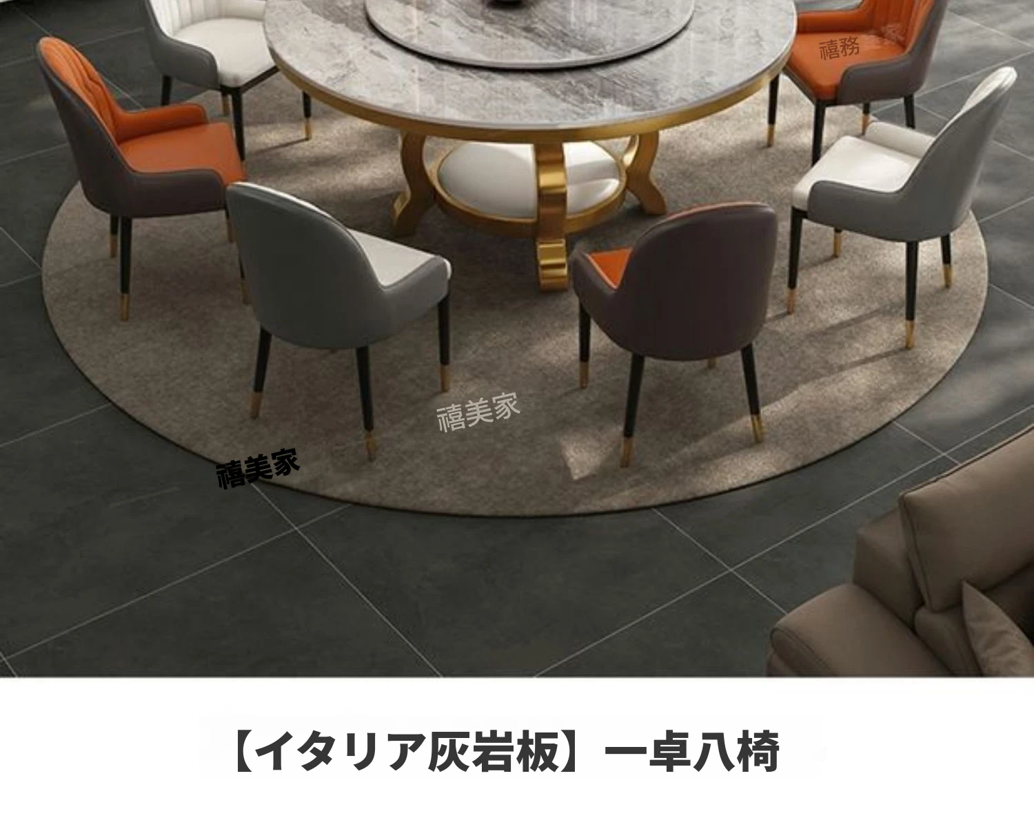 一卓8椅+回転盤【1.3メートル】【厚手の岩板】
