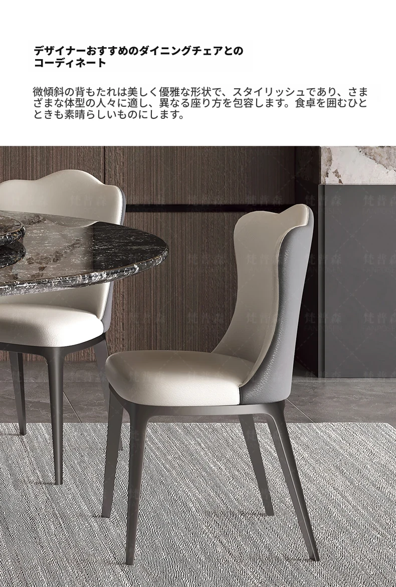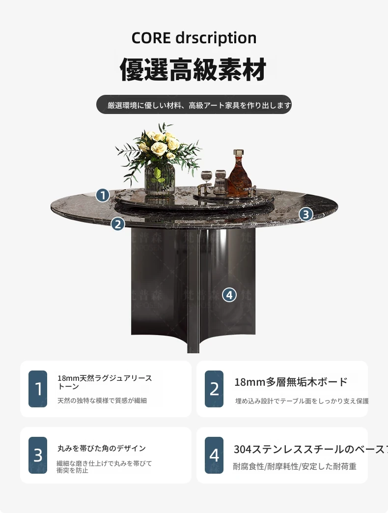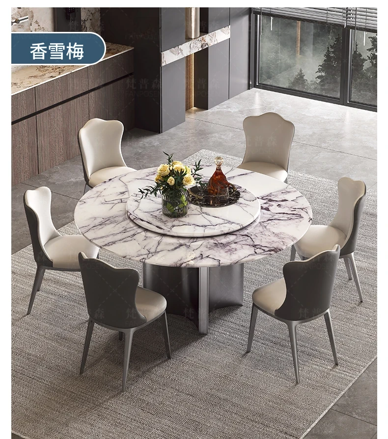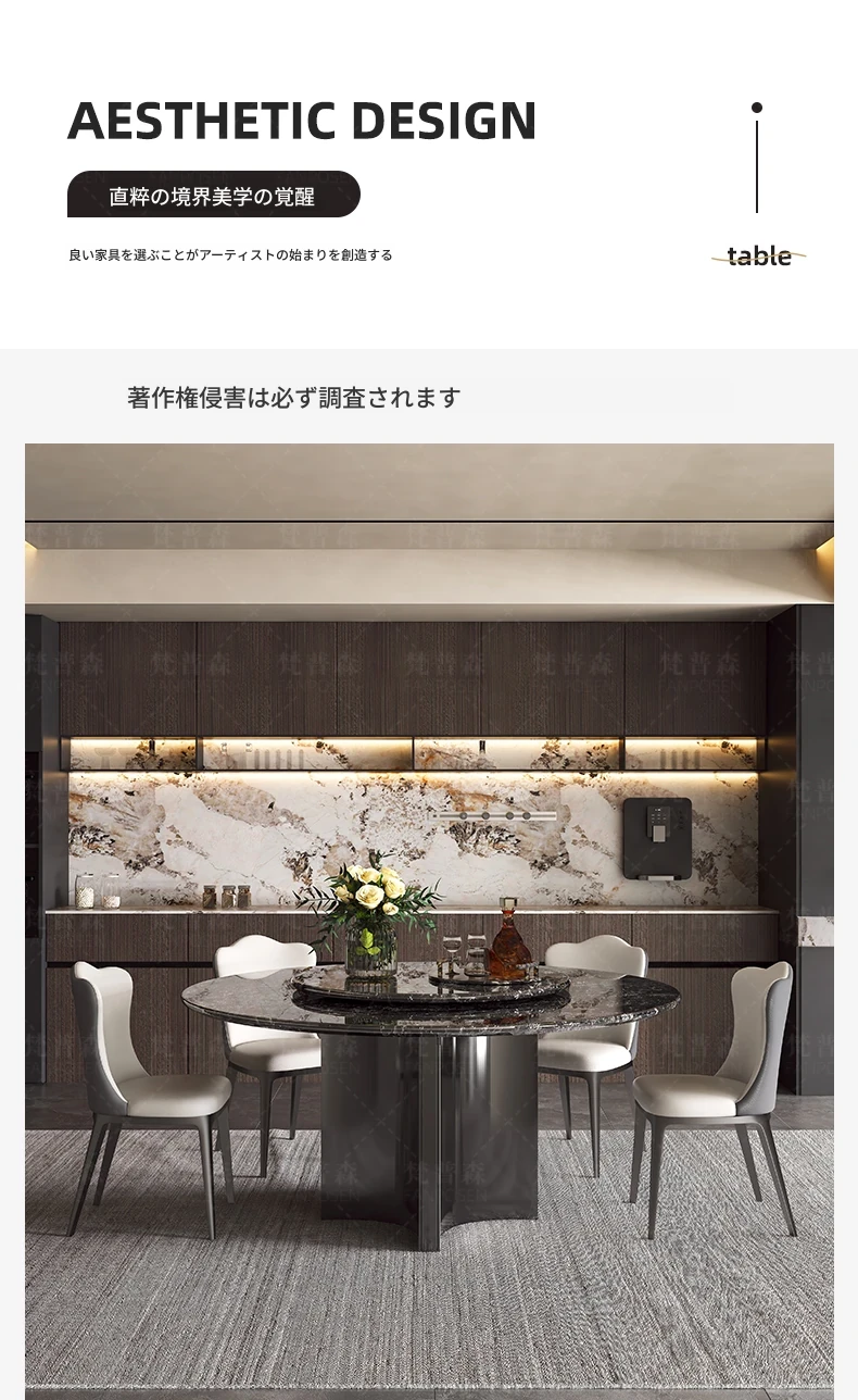 天然大理石使用のラグジュアリーなイタリアンスタイル円形ダイニングテーブル&チェアセット - ヴィラにぴったり、回転盤付きで使い勝手抜群!