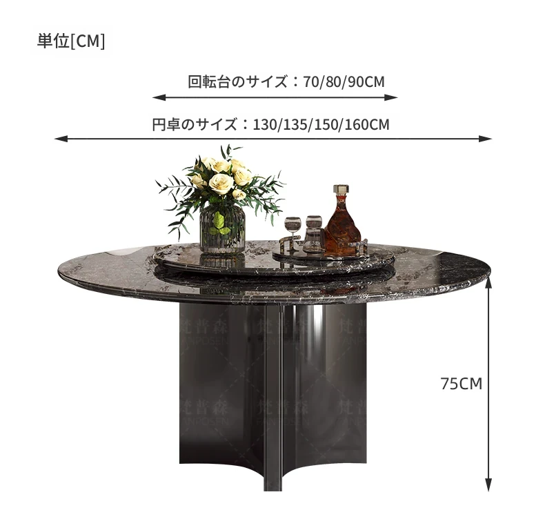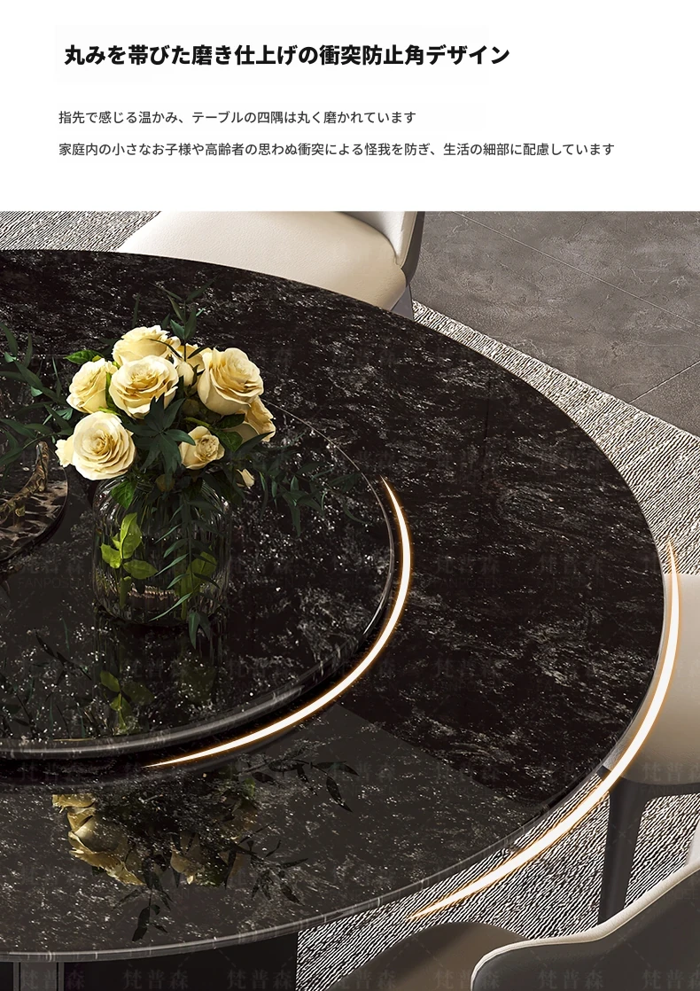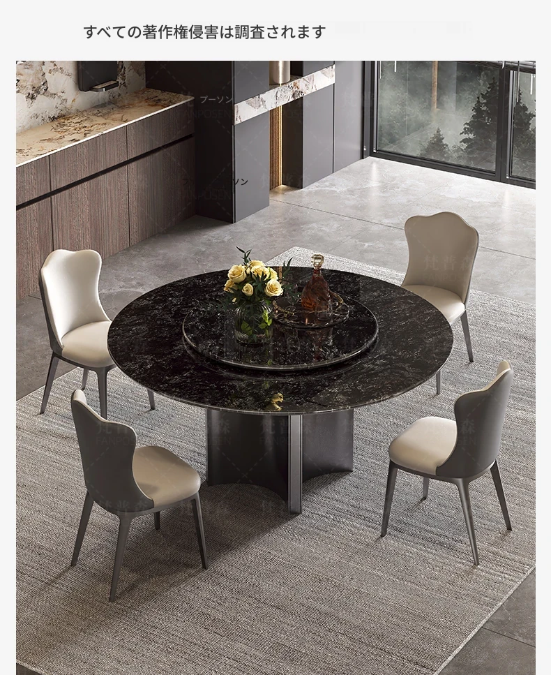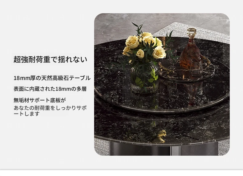 輸入されたファンシーな黒い天然石のダイニングテーブル+回転盤