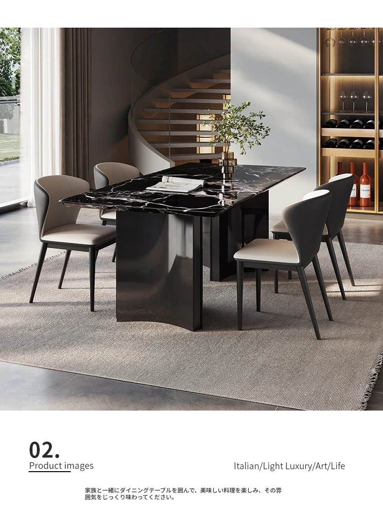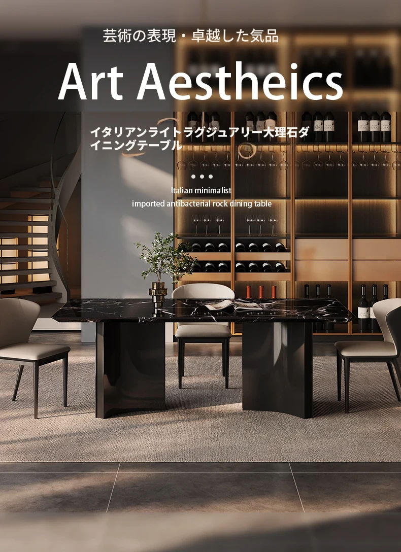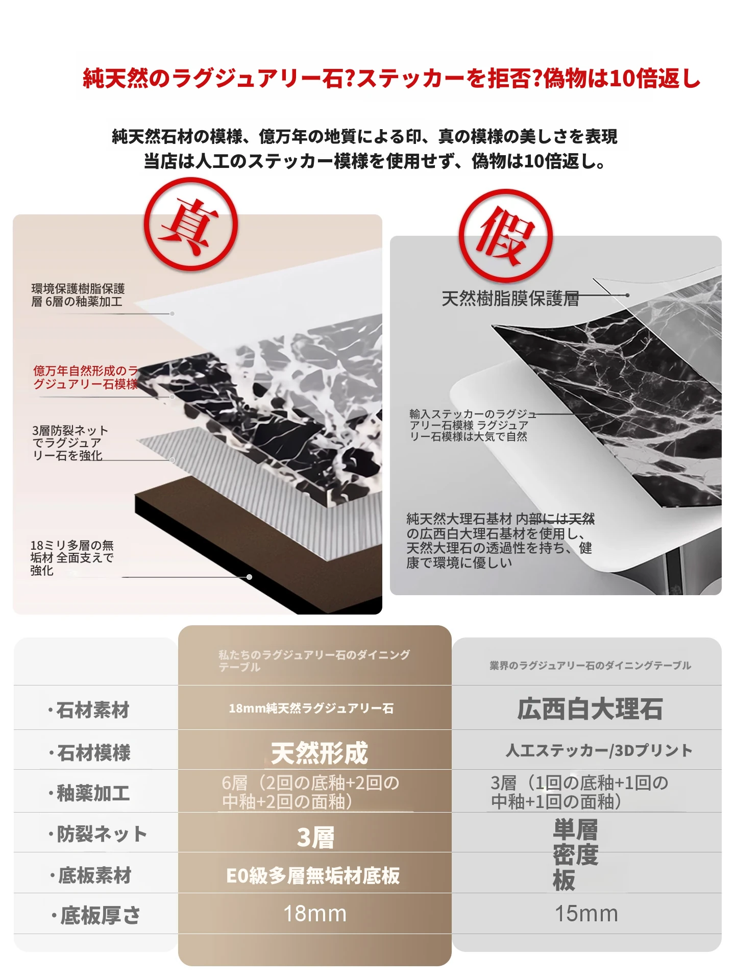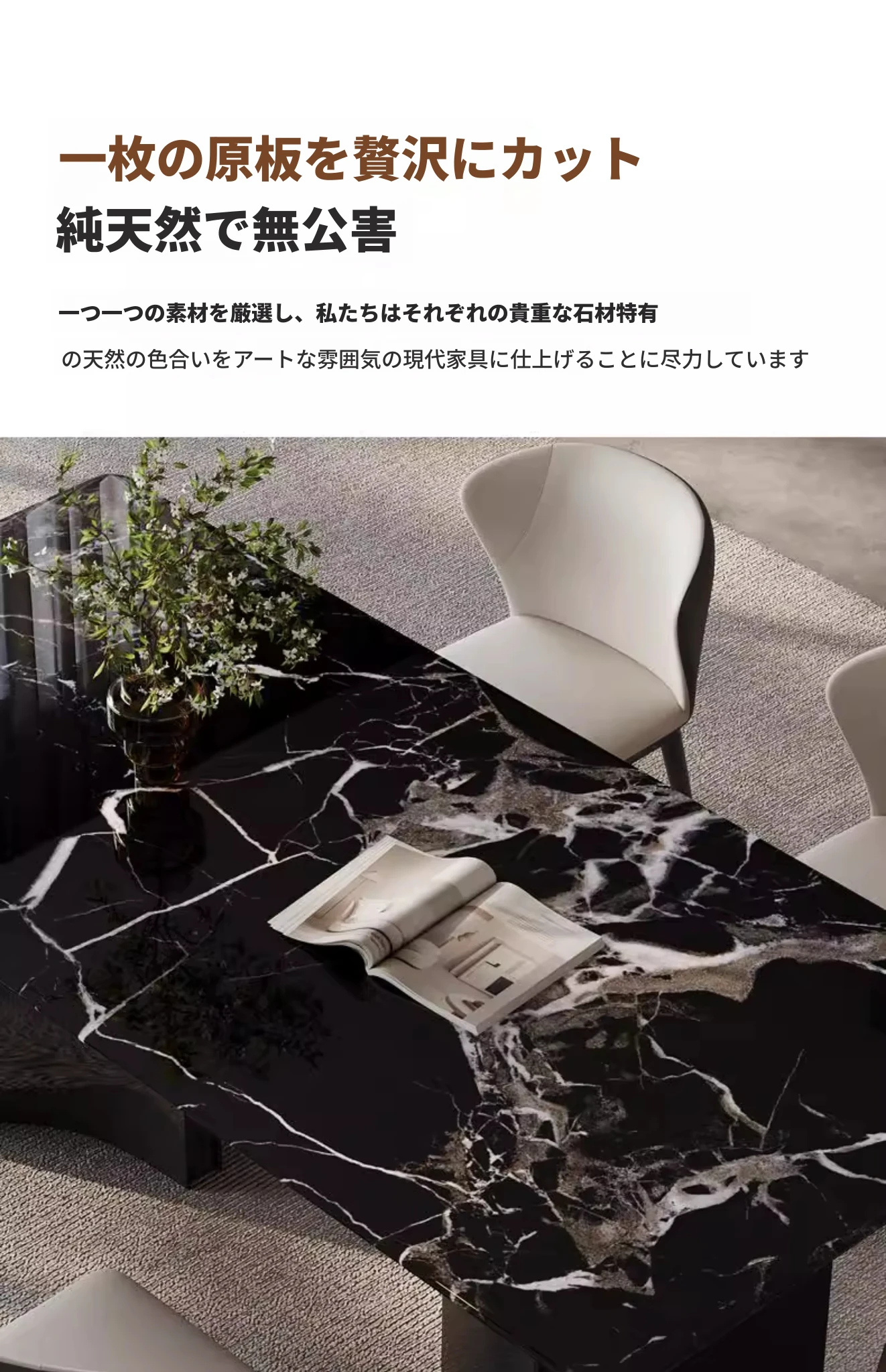 イタリア輸入ヴェネツィアブラウン天然ラグジュアリー石製ダイニングテーブル+デザイナーチェア*6脚【偽物は十倍返し】