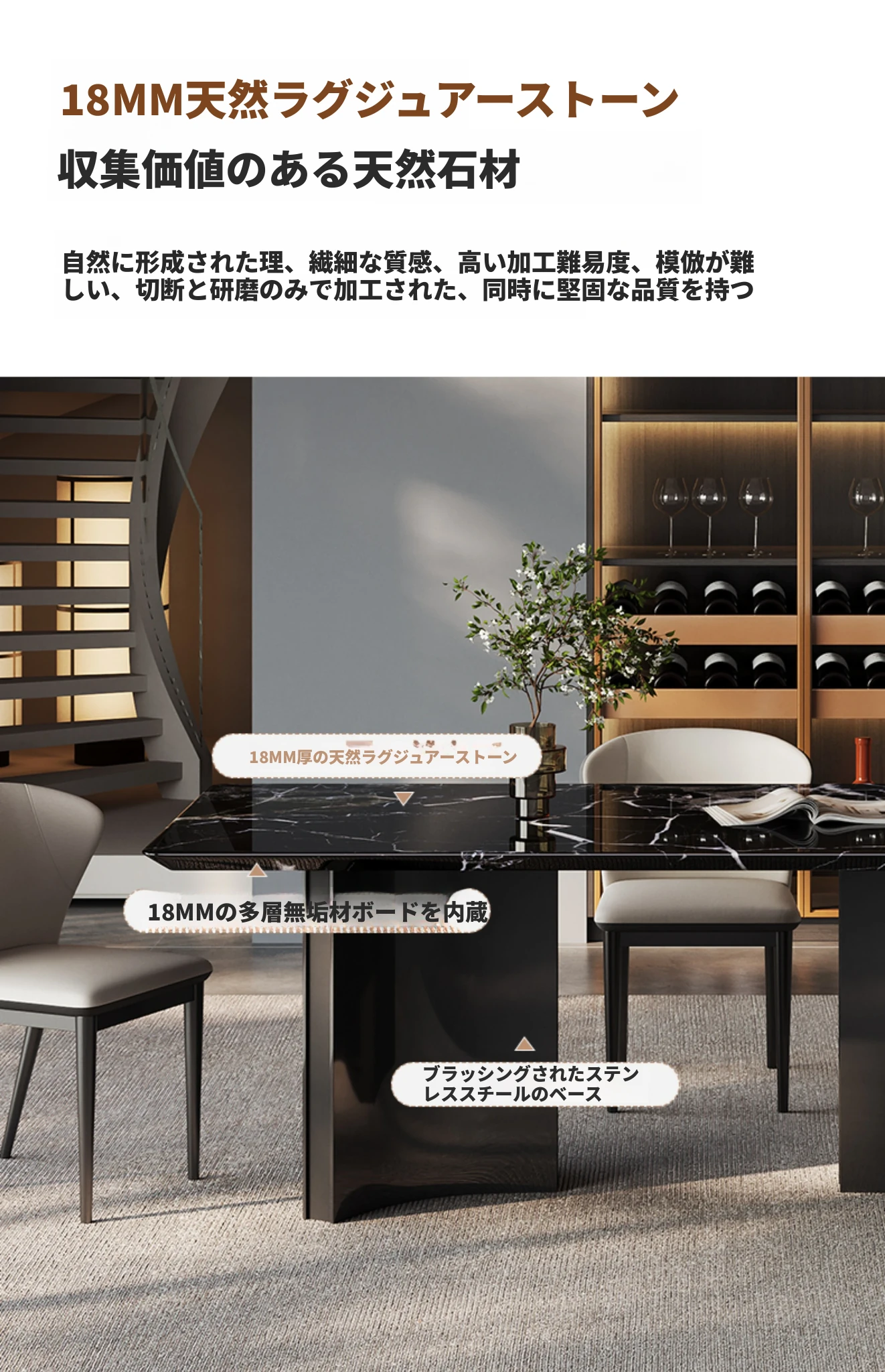 イタリア輸入ヴェネツィアブラウン天然ラグジュアリー石製ダイニングテーブル+デザイナーチェア*8脚【偽物は十倍返し】