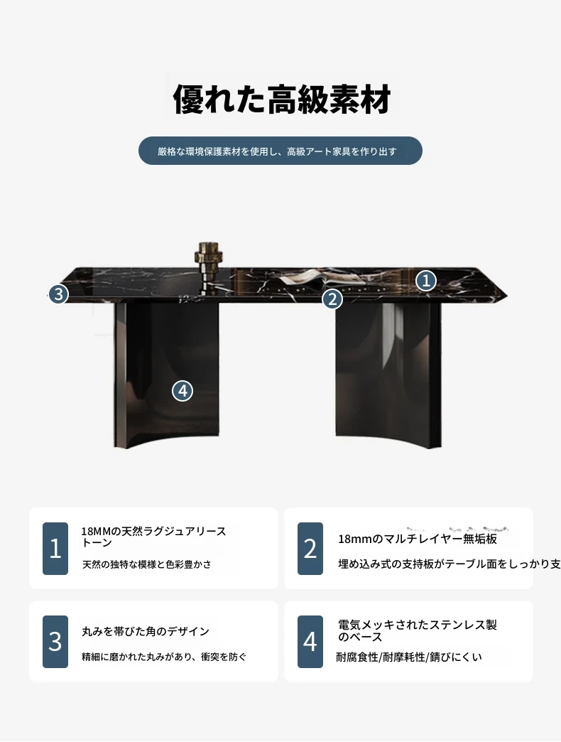 高級感あふれる天然石製ダイニングテーブル イタリア直輸入 ヴェネツィアブラウン 長方形 家庭用 高級食卓・ワークテーブルに最適