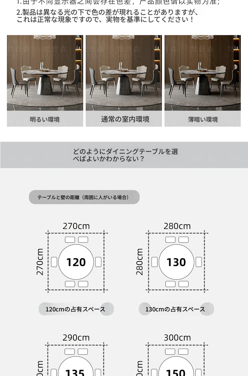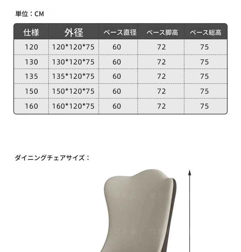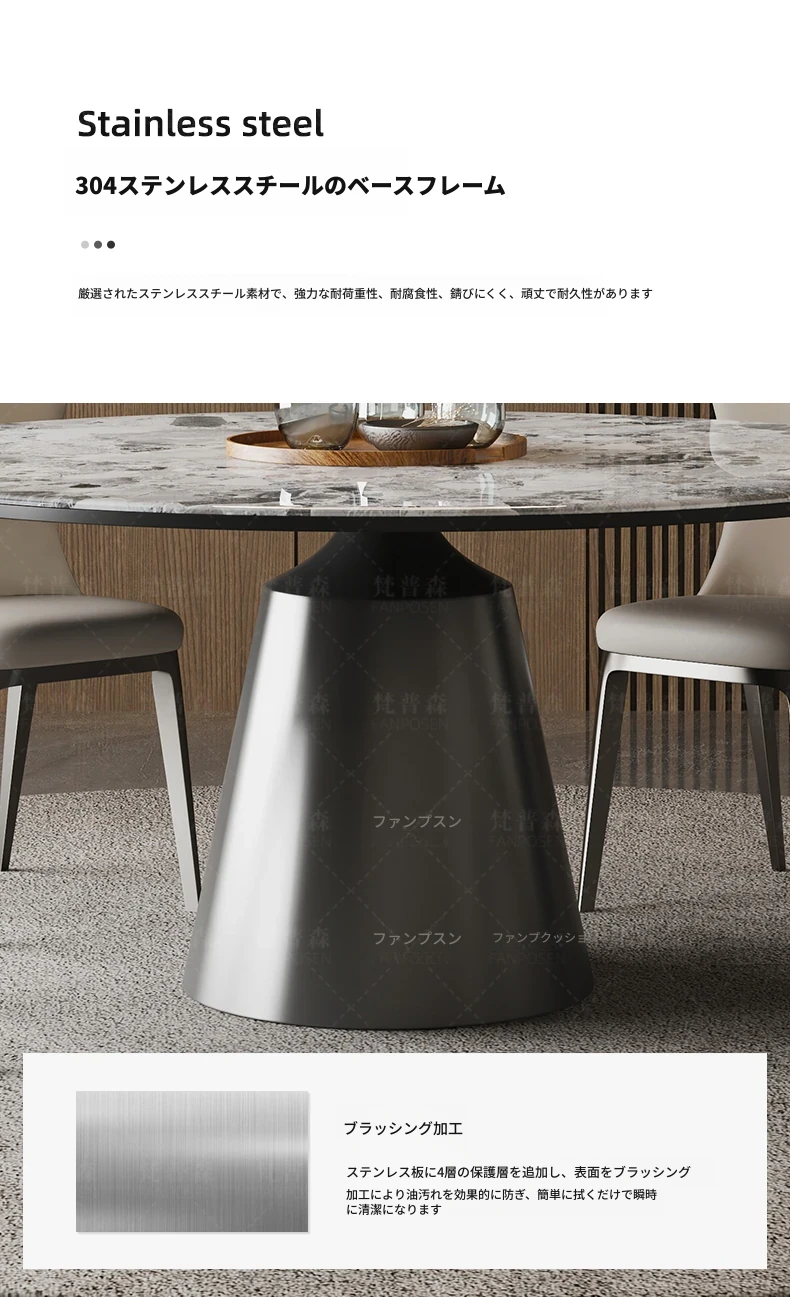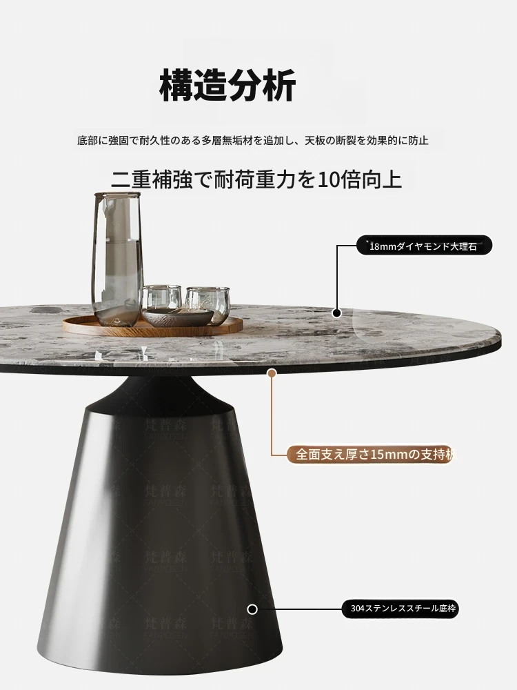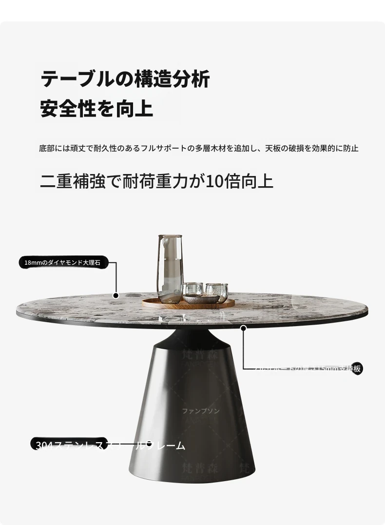 オレオグレー大理石円形ダイニングテーブル+回転プレート