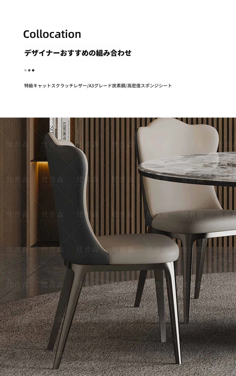 オレオグレー大理石円形ダイニングテーブル+特級猫抓皮ダイニングチェア*6