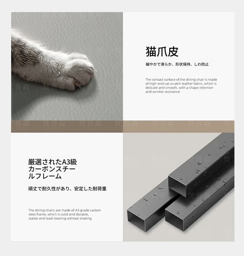 オレオグレー大理石円形ダイニングテーブル+特級猫抓皮ダイニングチェア*4