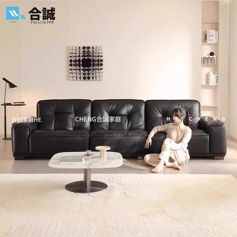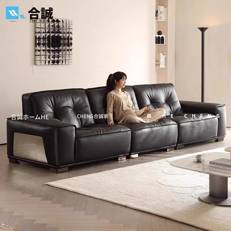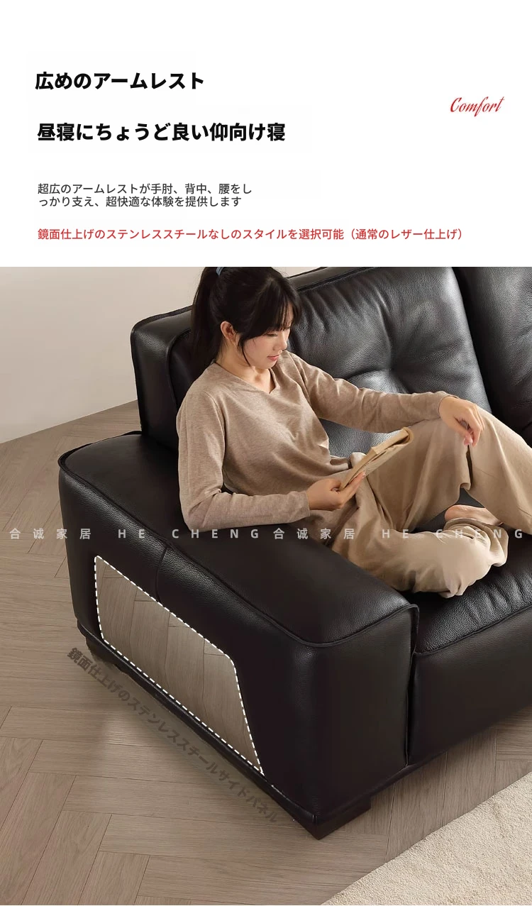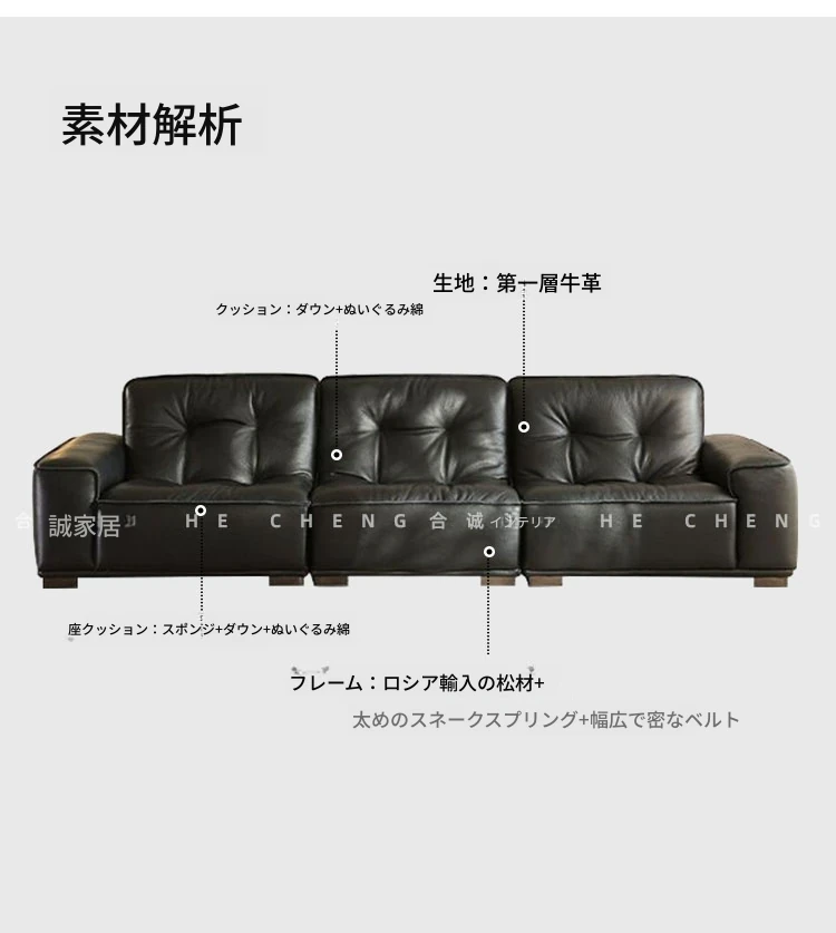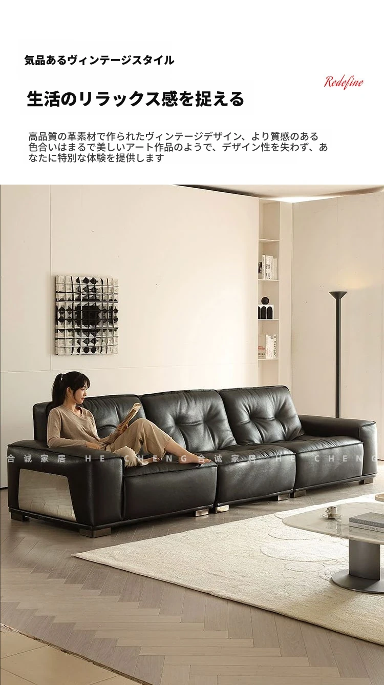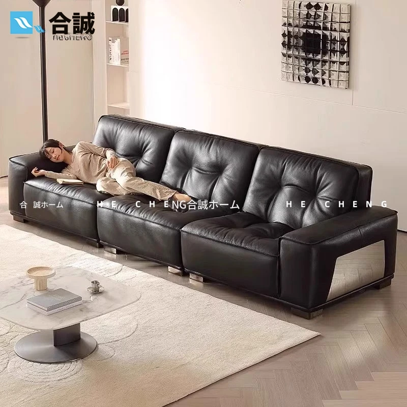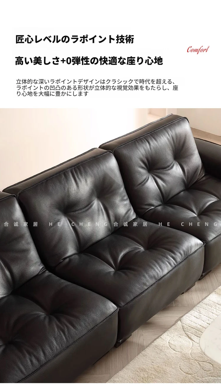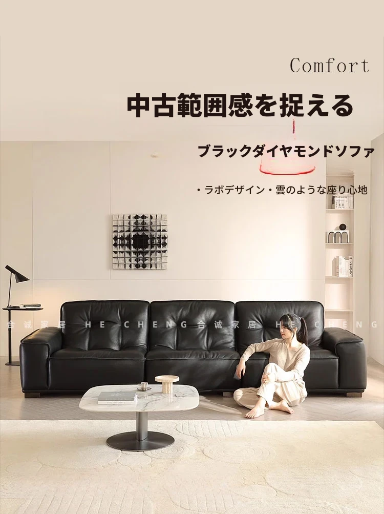合誠ホームの本革ソファー - 一級牛革使用、ブラックダイヤモンドデザイン!新作イタリアンミニマリズムで、リビングを洗練された空間に。小型住宅にもぴったりのラグジュアリー感をお届けします!