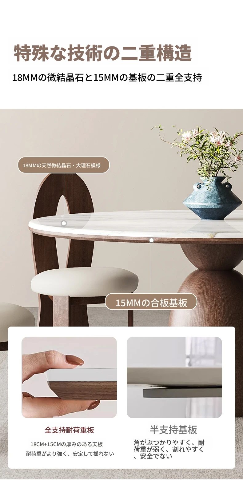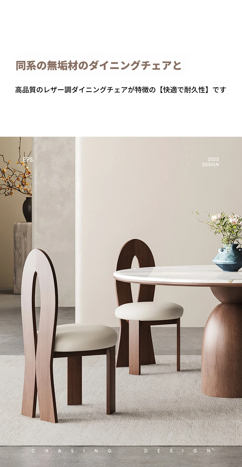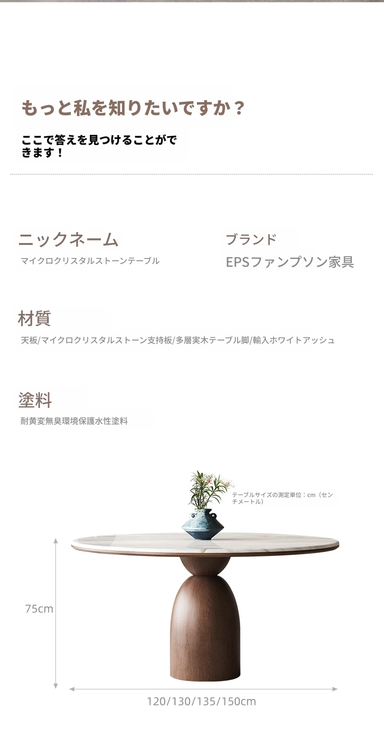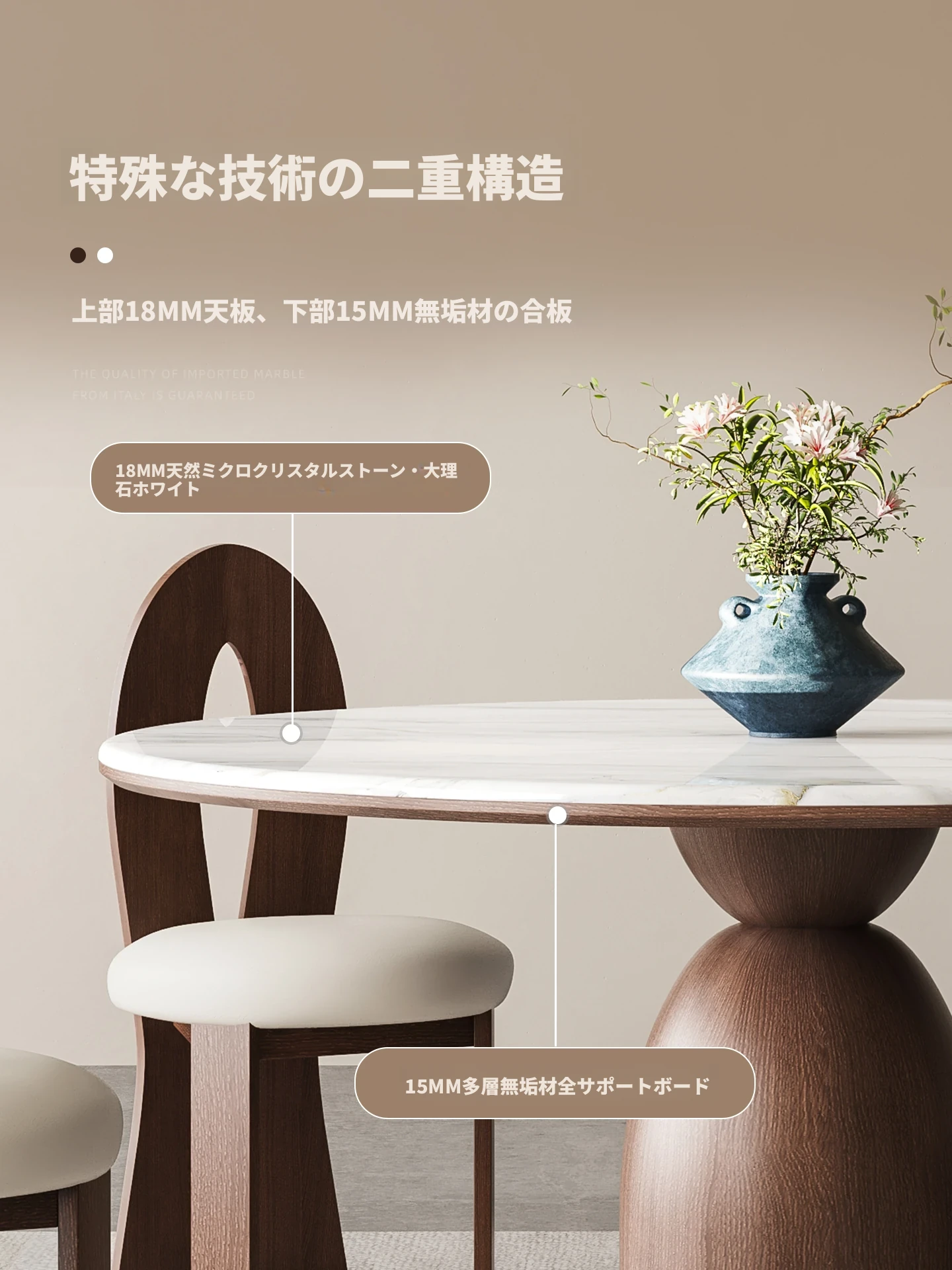 天然木材と高級ミクロクリスタルを使用した、シンプルでエレガントな丸型ダイニングテーブルセット。コンパクトなデザインで、小さな家でも快適にお使いいただけます。中古風の魅力を持つこのテーブルで、特別な食事のひとときをお楽しみください。