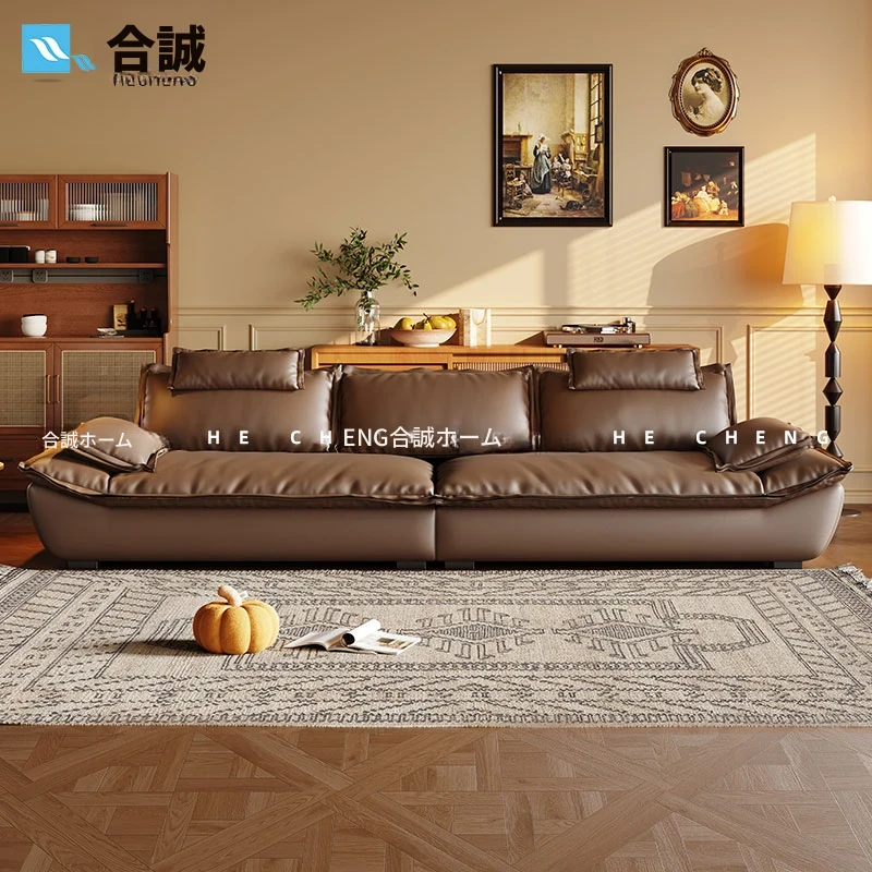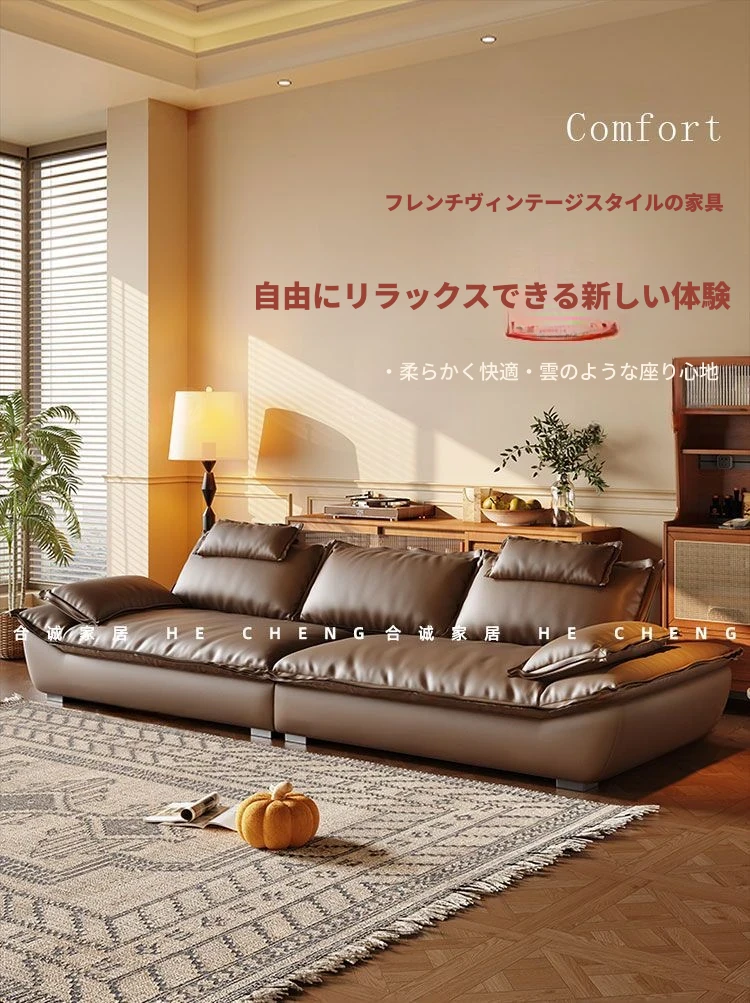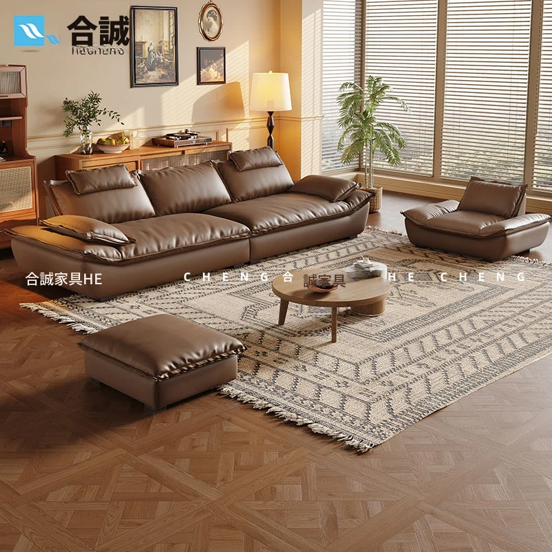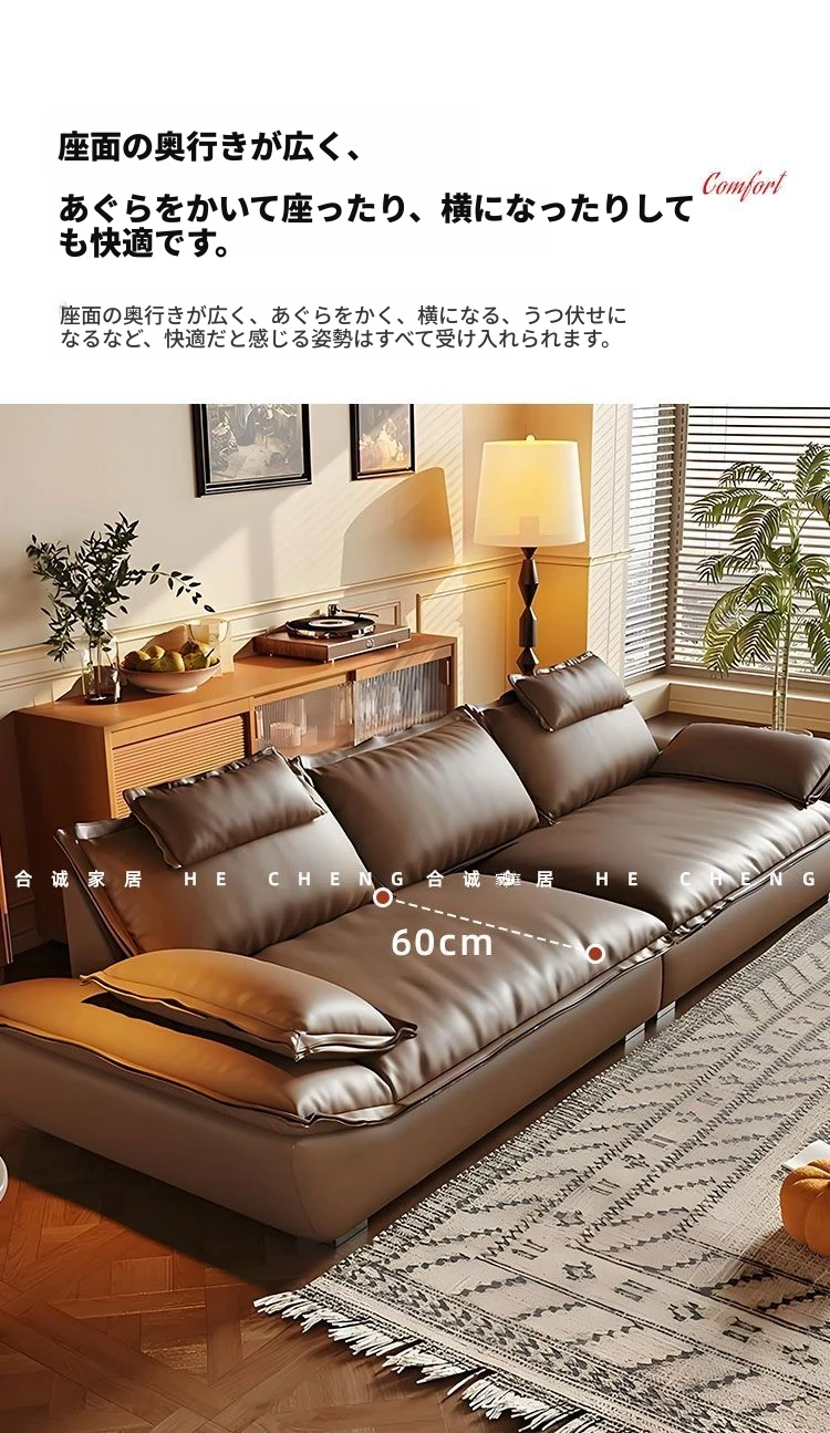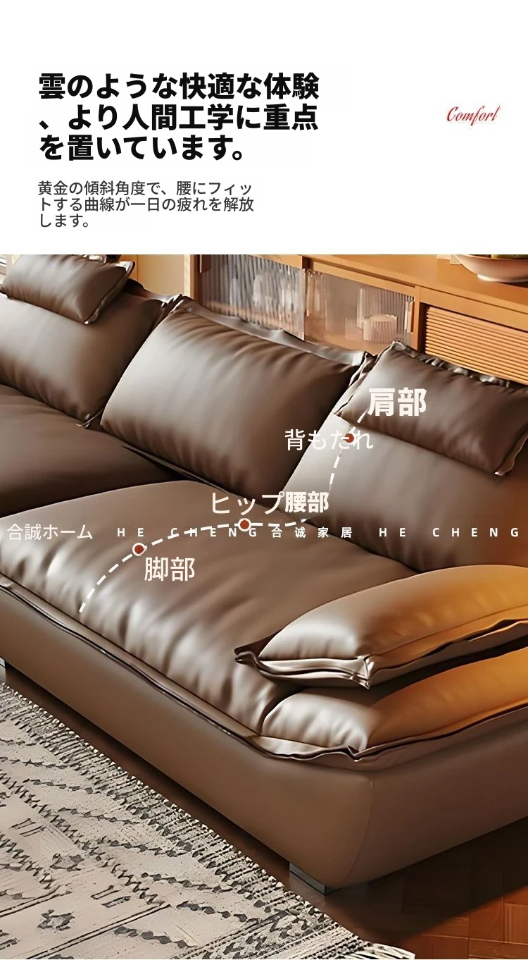 合誠家居の本革ソファ|イタリアンスタイルのモダンリビング用|人気の帆船デザイン|高級トップグレイン牛革使用|シンプルで洗練された美しさを実現!