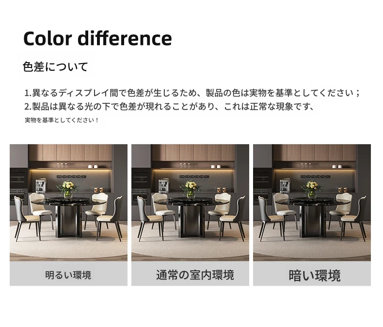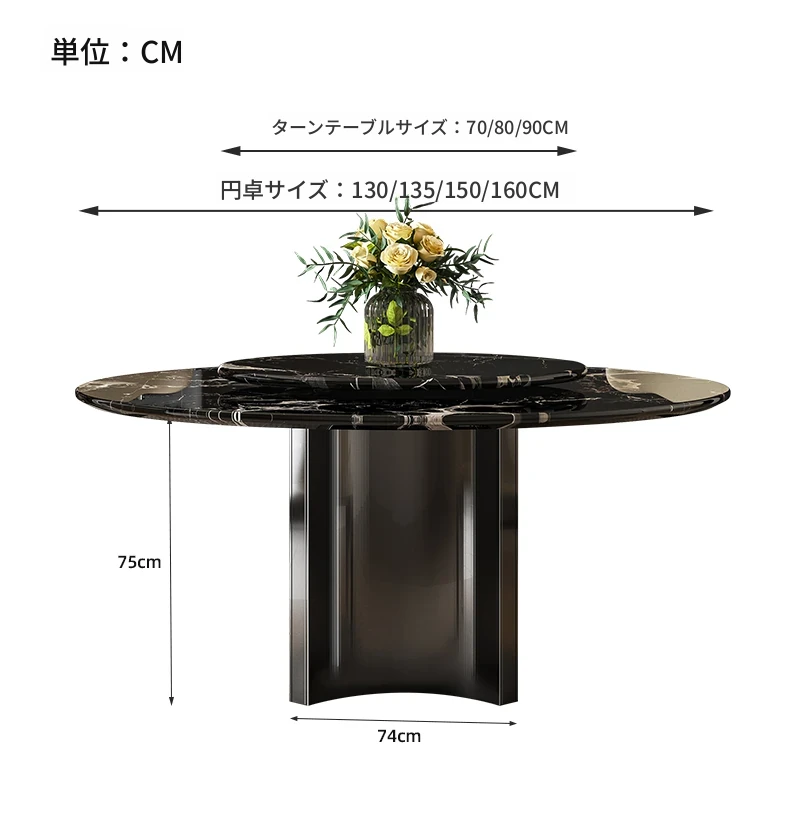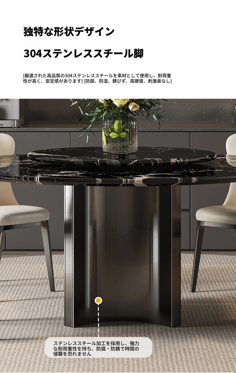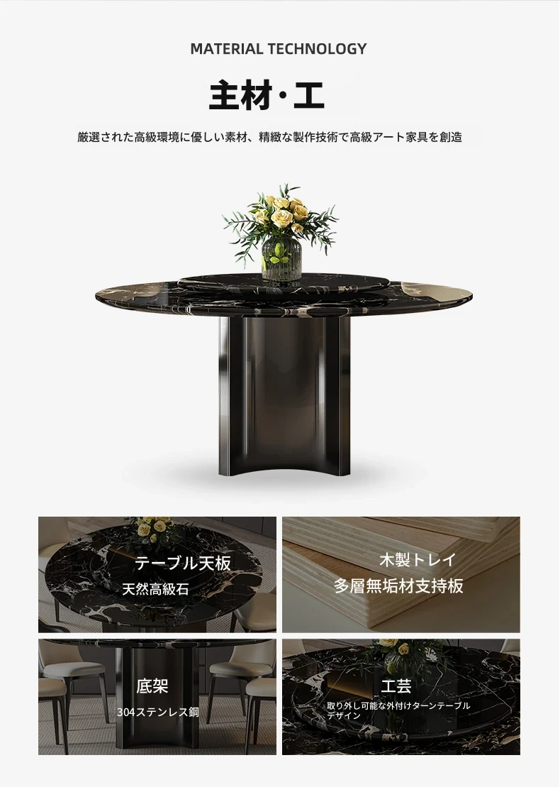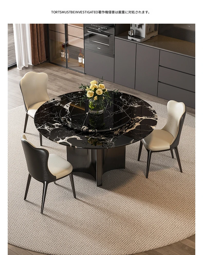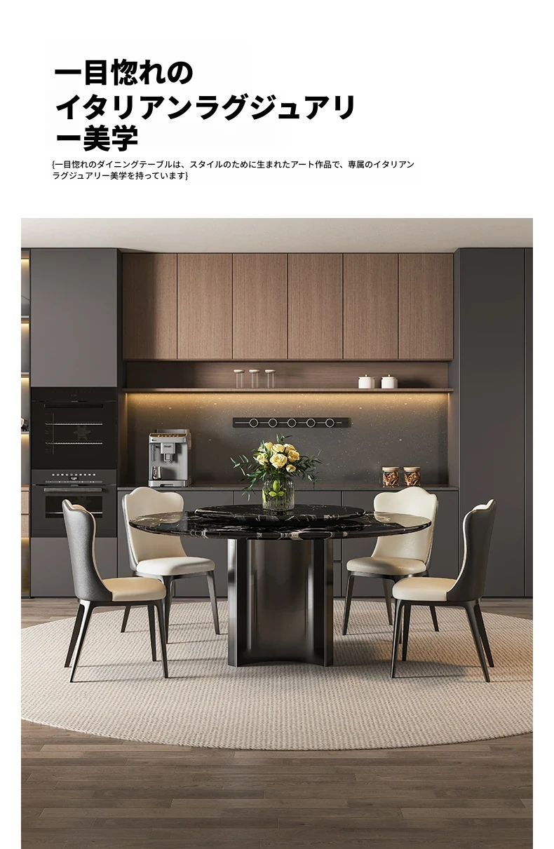 輸入黒バラ天然ラグジュアリー石円形ダイニングテーブル+本革ダイニングチェア*4