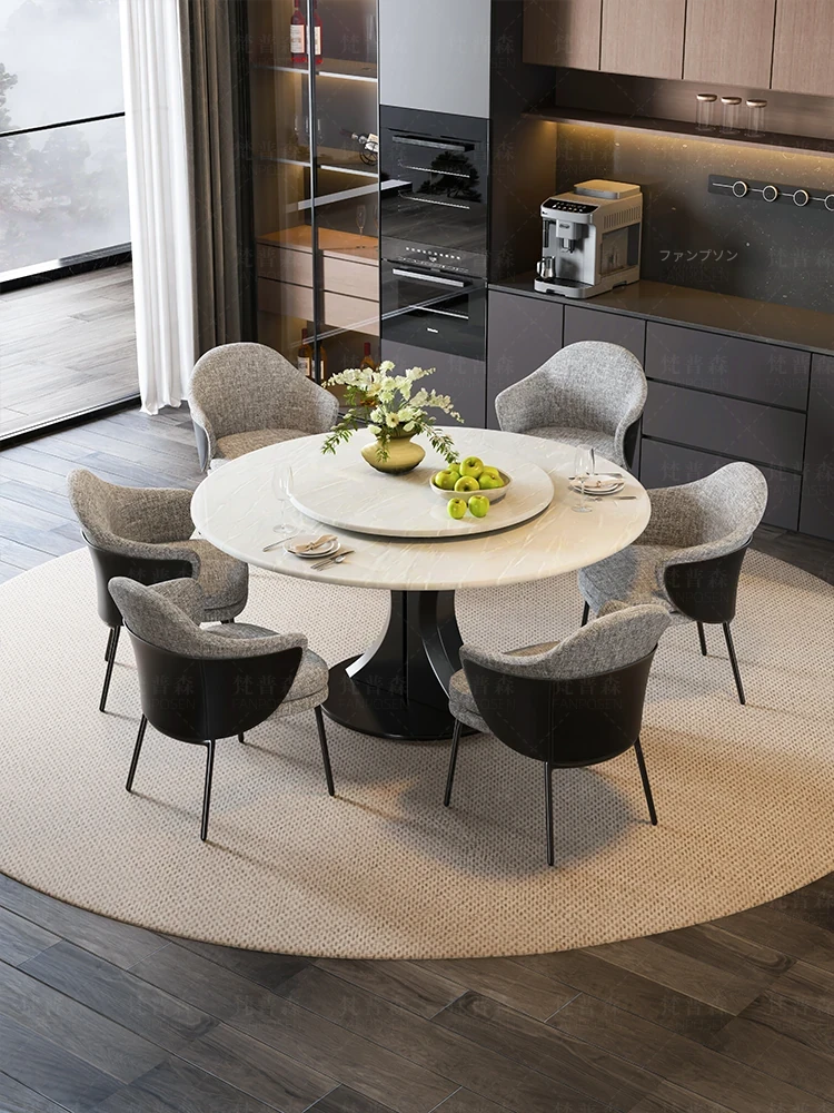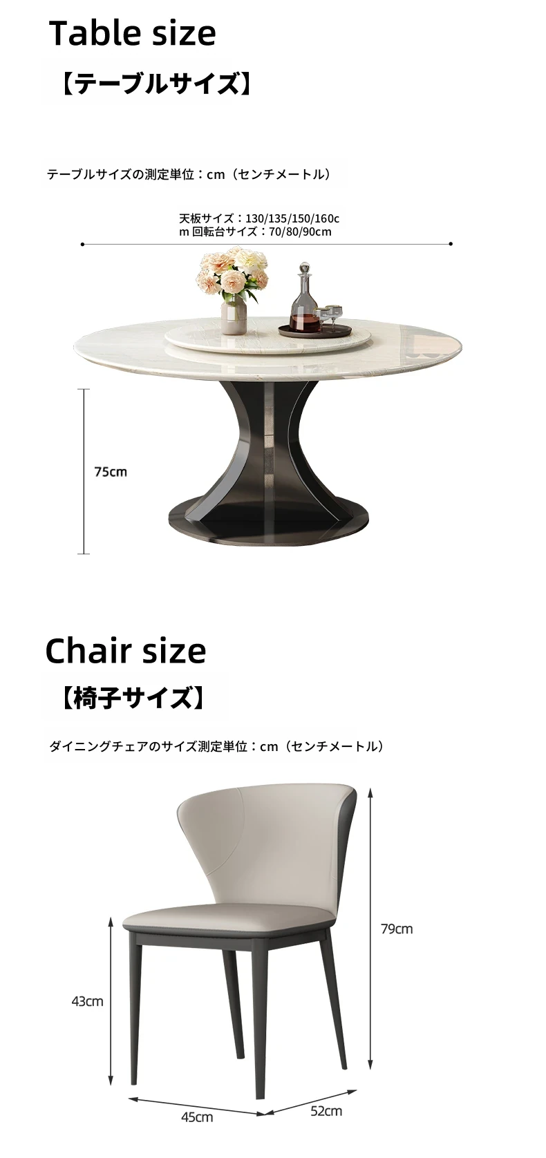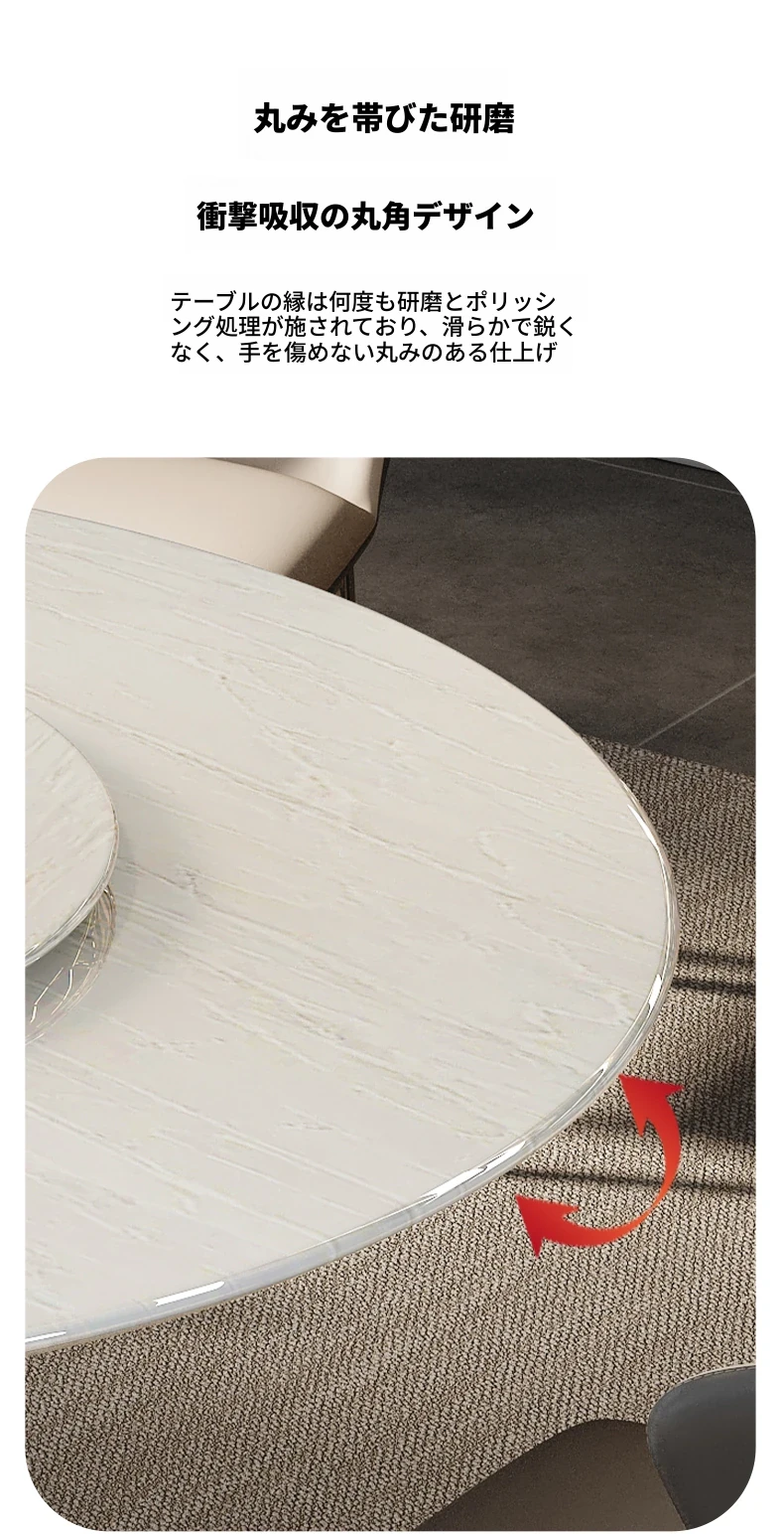 【輸入】S級カリアイス玉天然ラグジュアリーストーン円形ダイニングテーブル+回転盤+本革ダイニングチェア*6