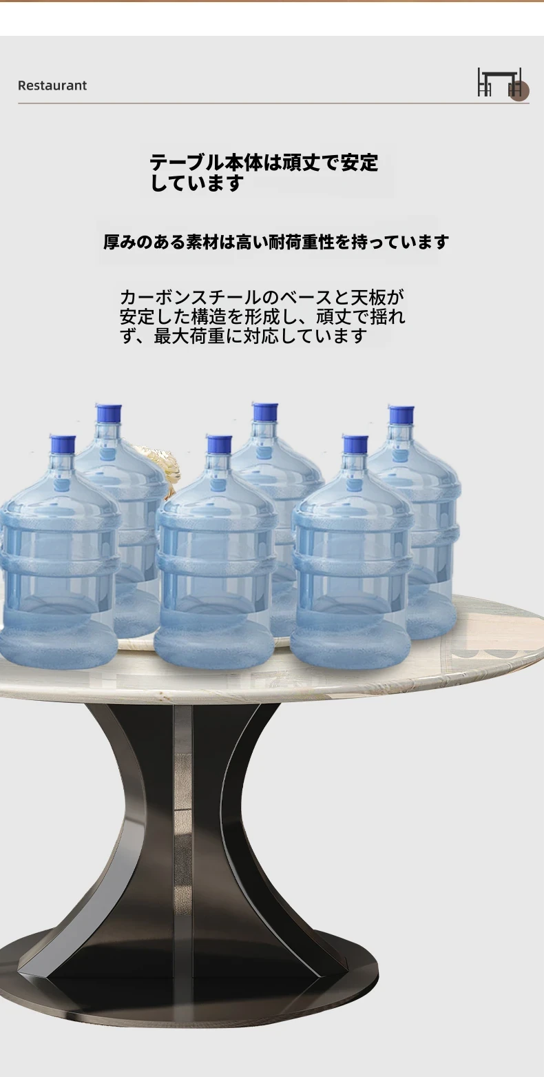 「高級感漂うイタリアンスタイルの天然大理石製ラウンドテーブル - インポート・カリアイスジュエル。洗練されたデザインで、特別な食卓を演出します。あなたのインテリアに華を添える一品です。」
