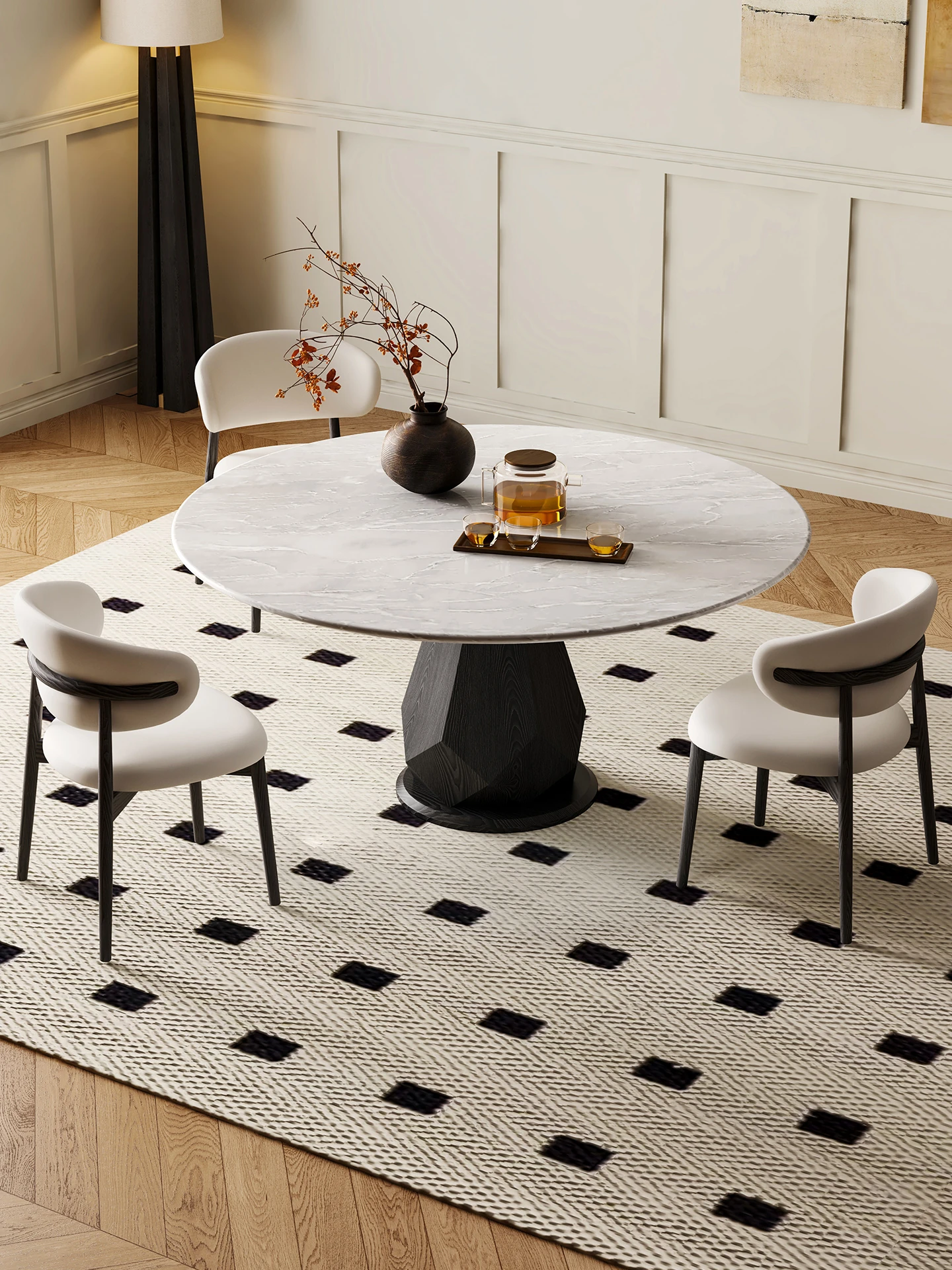 2025年新作!輸入された純天然のラグジュアリー石製ダイニングテーブル。中華風デザインの高級感あふれる無垢材と大理石の円形テーブル、回転式プレート付きで、特別な食事体験を提供します。