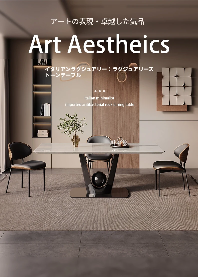 イタリア・ヴェネツィア・ブラウン・ラグジュアリー・ストーン+デザイナー・ダイニングチェア*6脚【偽りの場合、10倍返し】