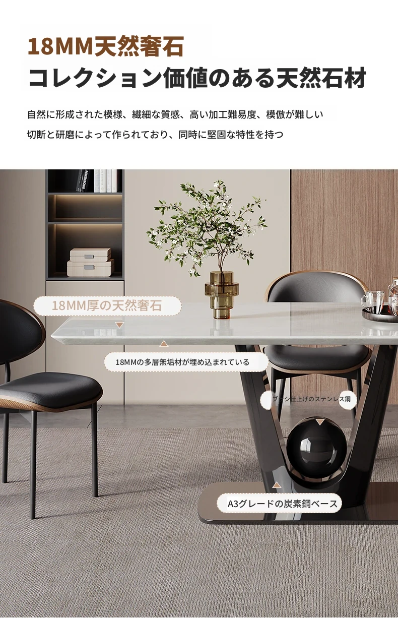 イタリア・ヴェネツィア・ブラウン・ラグジュアリー・ストーン+デザイナー・ダイニングチェア*8脚【偽りの場合、10倍返し】