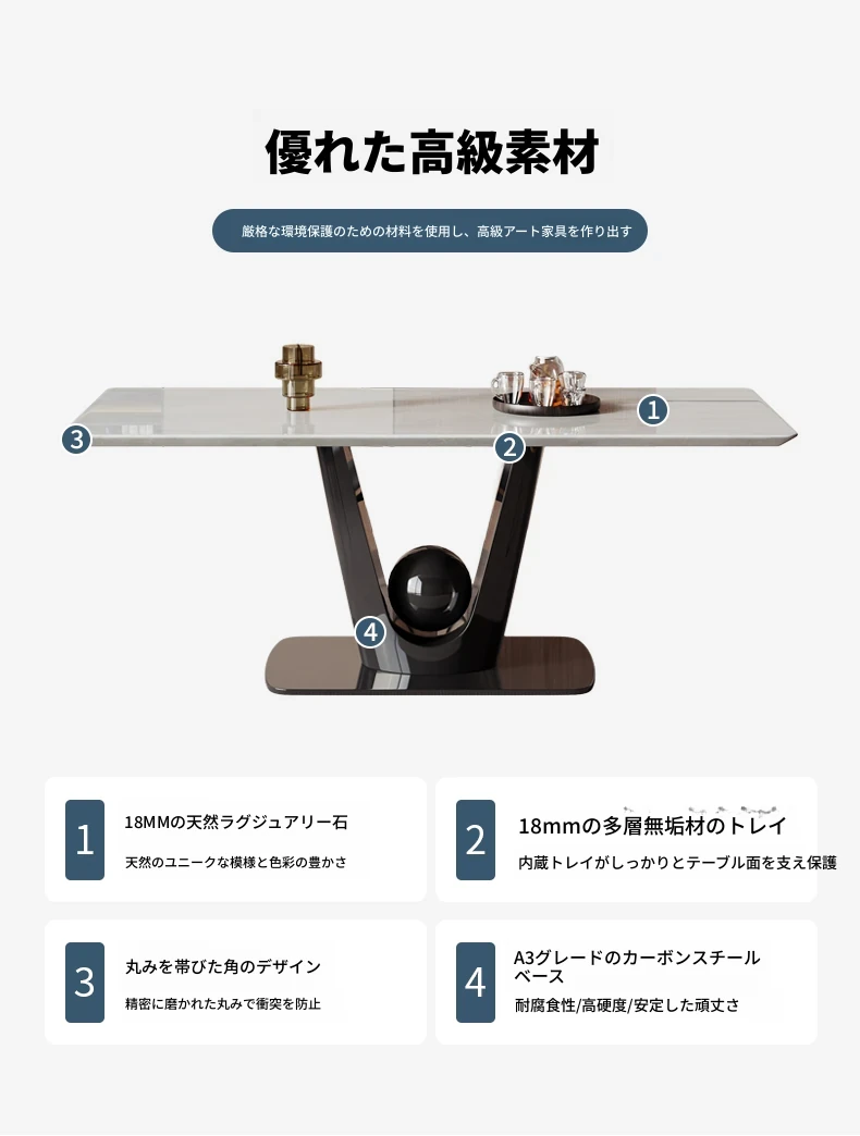 イタリア直輸入のヴェネツィアブラウン天然ラグジュアリー石製ダイニングテーブル - 高級感あふれる長方形マーブルテーブルで、あなたの家をスタイリッシュに演出!