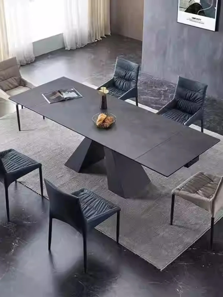 イタリアンミニマルデザインの折りたたみ式伸縮テーブル&チェアセット - 高級コンパクトな複合石材を使用した現代的なダイニングテーブル、家族や友人との食事に最適です!