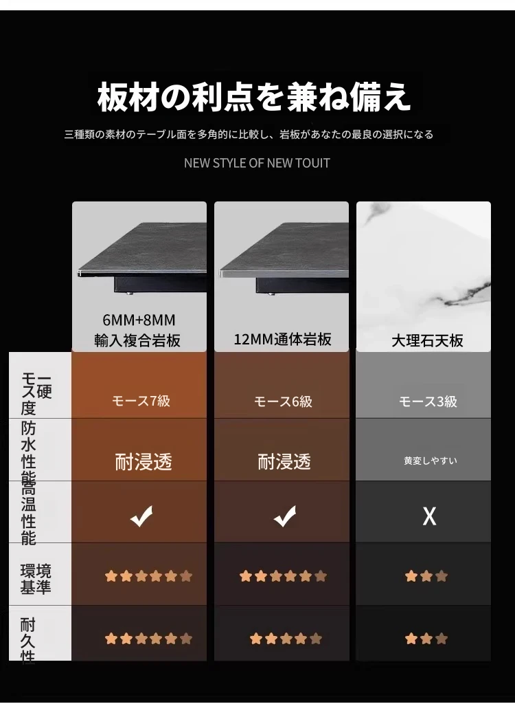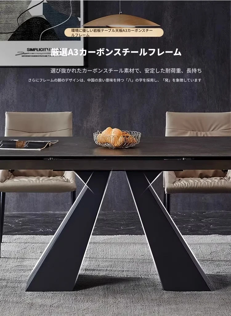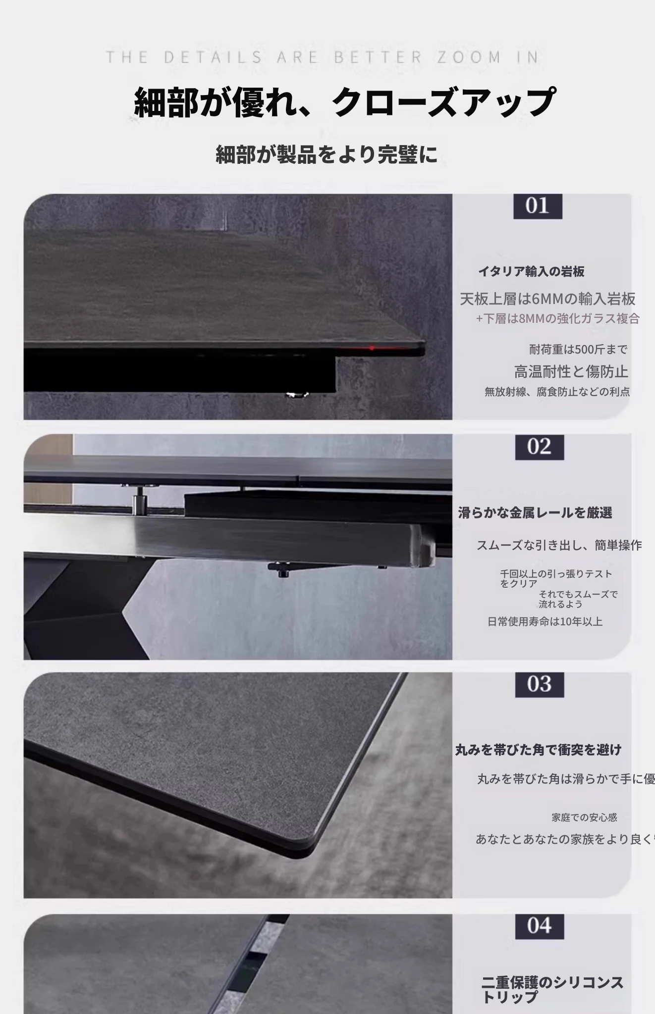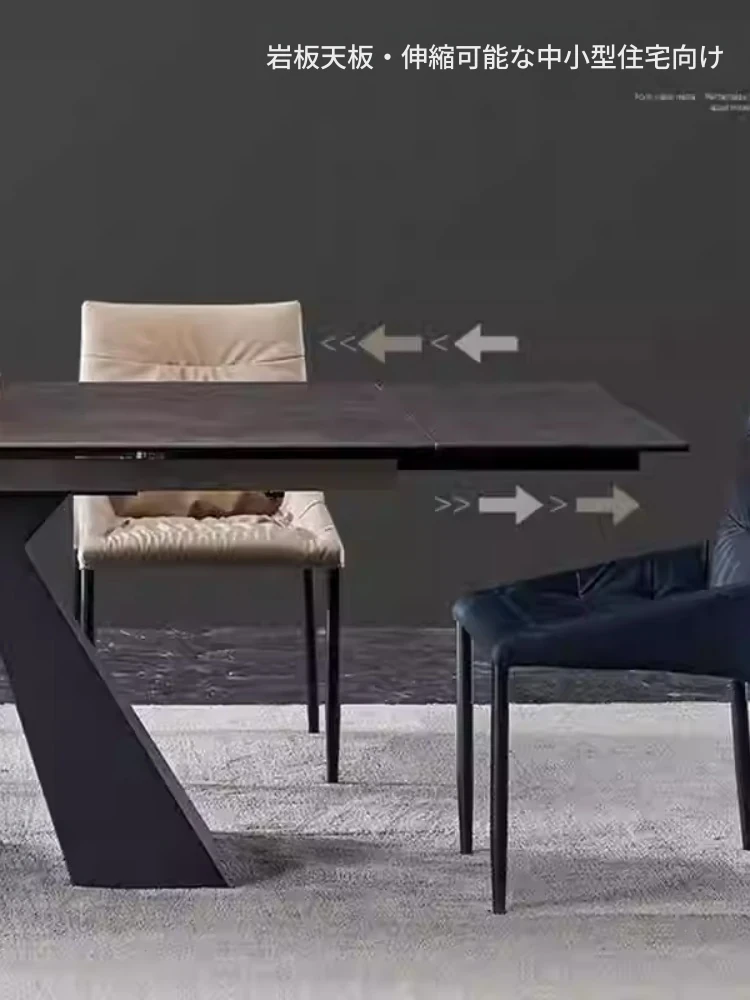 1.4Mダイニングテーブル拡張1.7M-2.0M【14mm複合岩板】+二重椅子*4