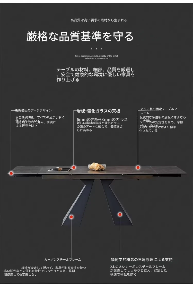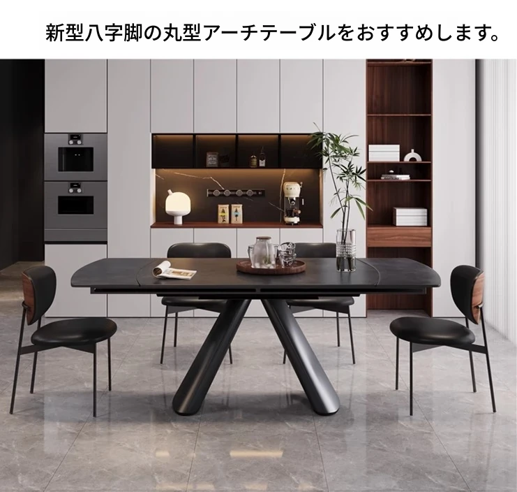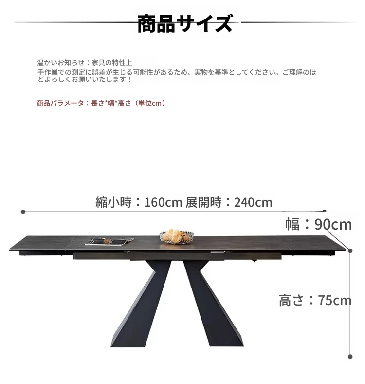 1.6Mダイニングテーブル拡張2.0M-2.4M【14mm複合岩板】
