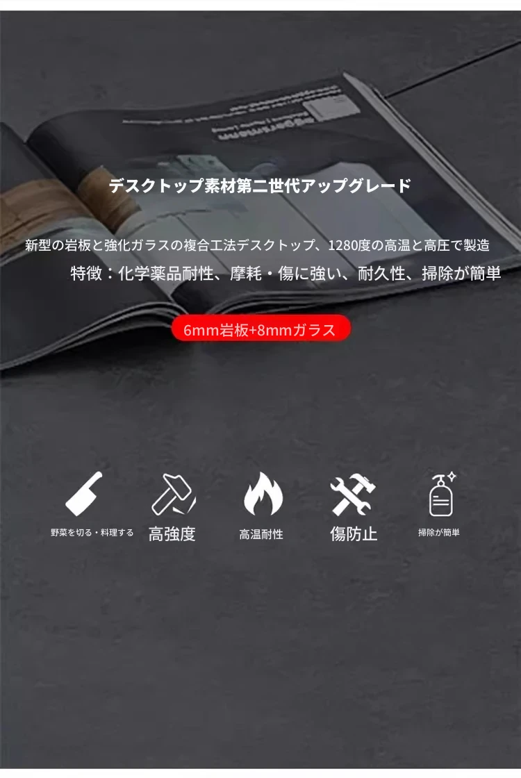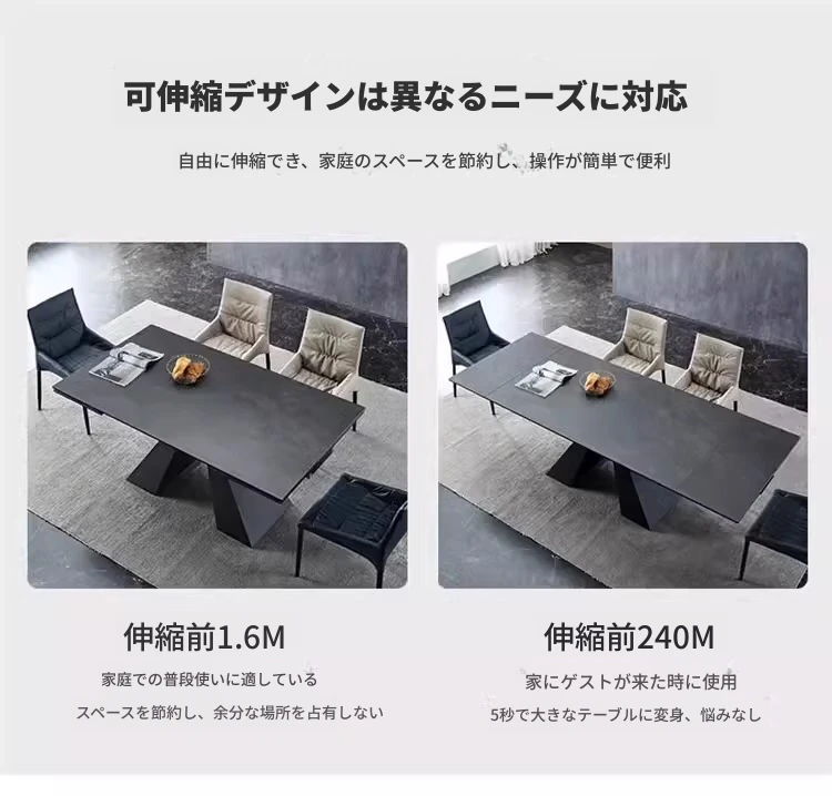 1.6Mダイニングテーブル拡張2.0M-2.4M【14mm複合岩板】+二重椅子*4