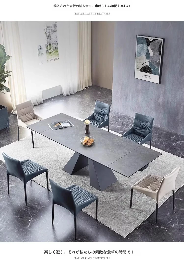1.4Mダイニングテーブル拡張1.7M-2.0M【14mm複合岩板】+二重椅子*6