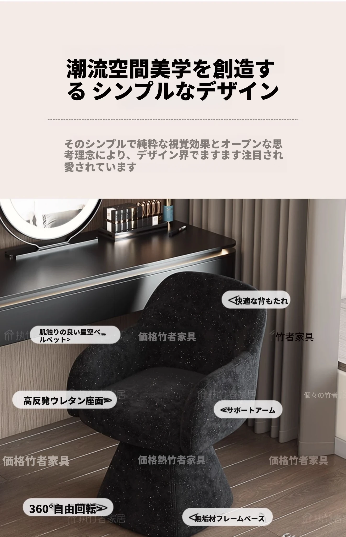 イタリアンリュクス化粧台スツール|北欧風シンプルデザイン|小スペースに最適|おしゃれなメイクアップチェア|インフルエンサー愛用|高級ネイルチェアとしても!