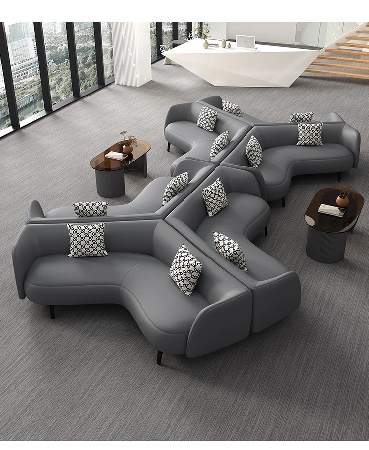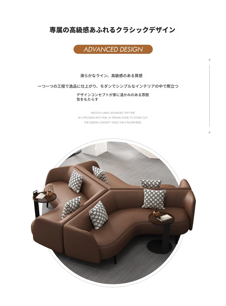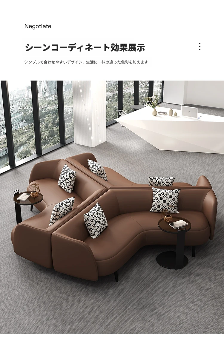 ビジネス会議やホテルロビーに最適!高級感あふれる皮革ソファ - 販売所、接待、銀行の待機エリアにもぴったり。快適でスタイリッシュな空間を提供します!