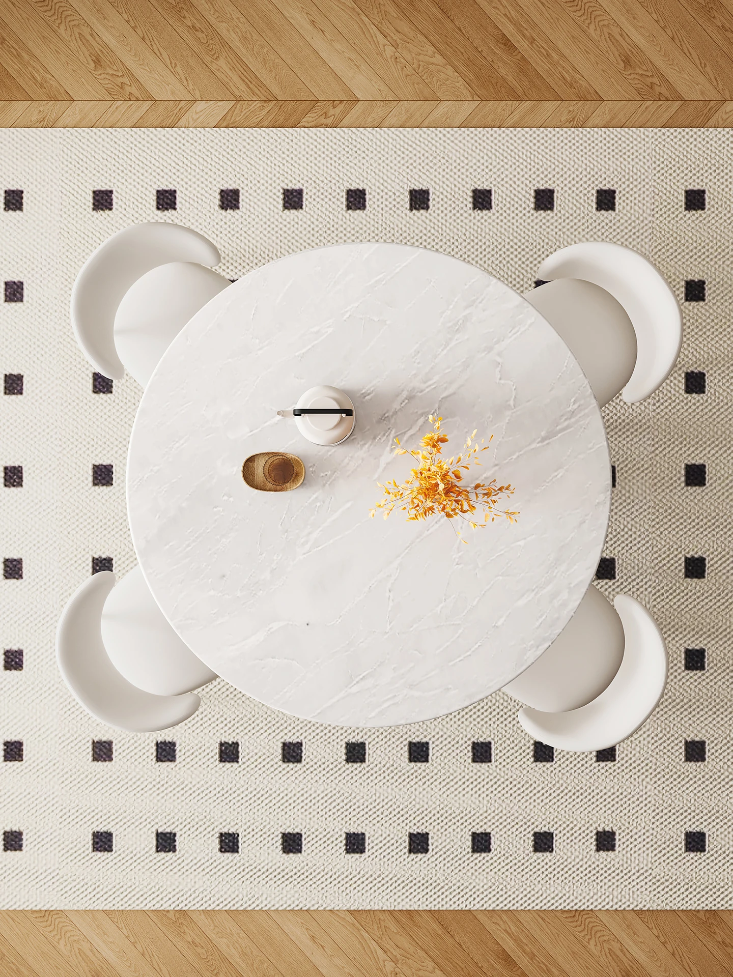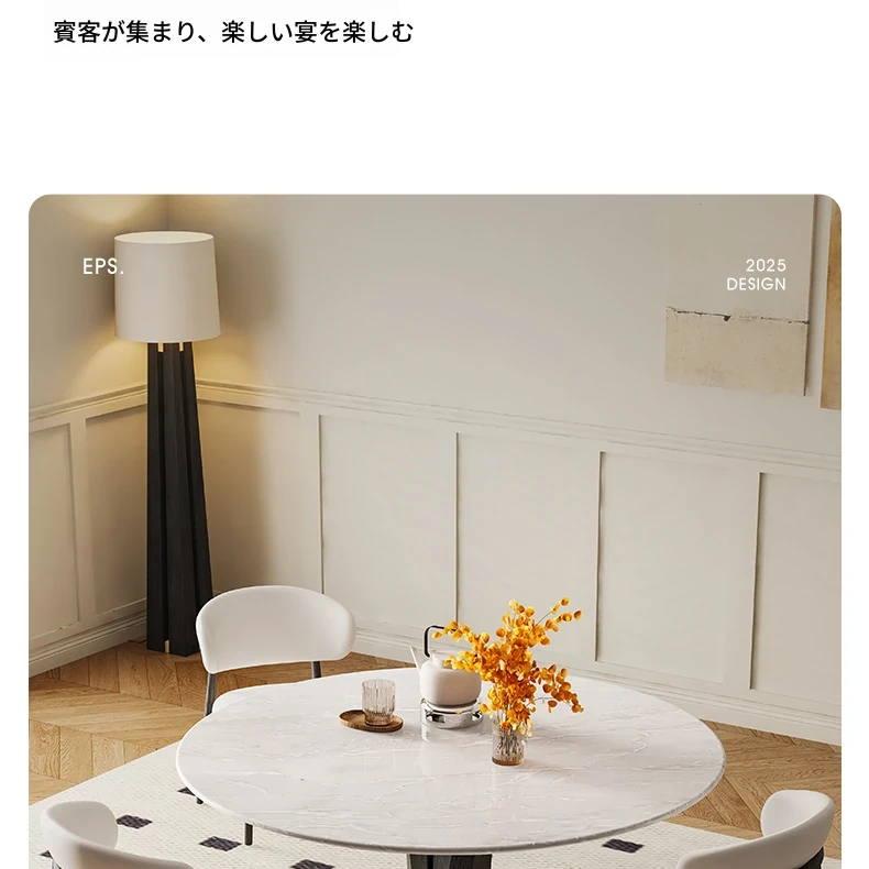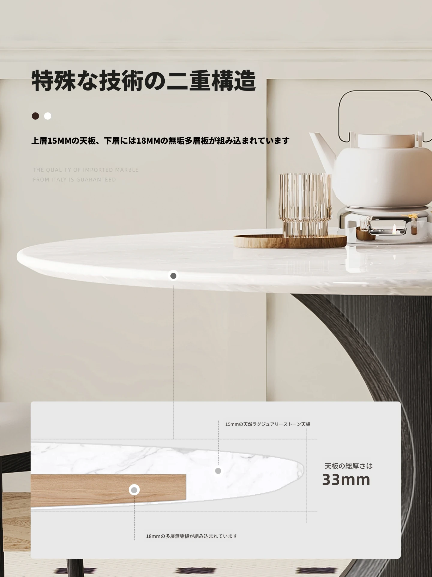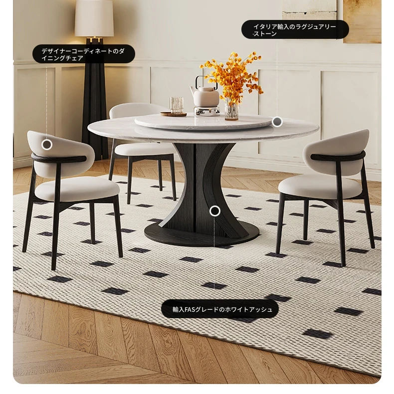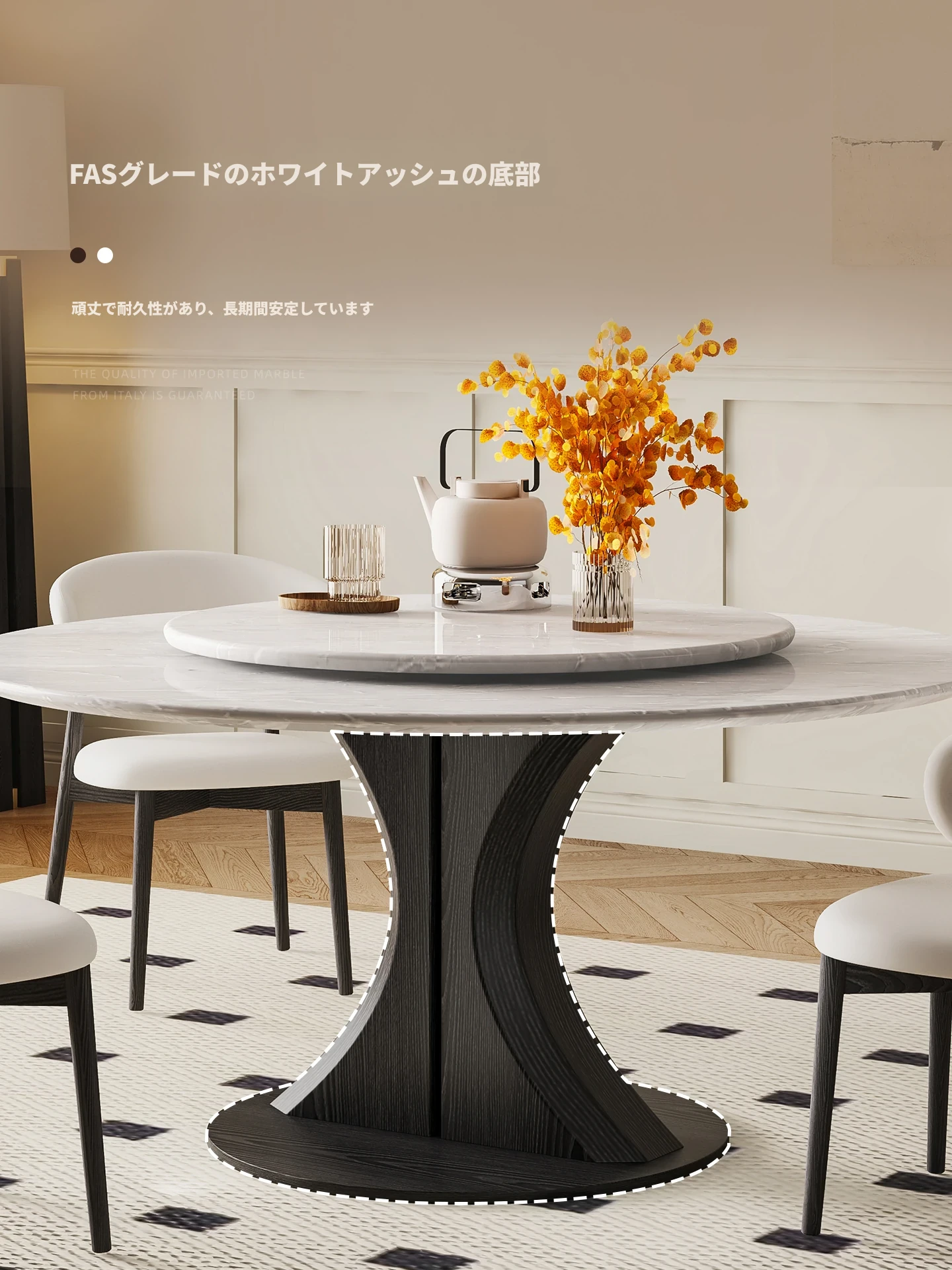 高級感溢れる天然大理石製のラウンドテーブル - 2025年新作!中古風デザインの実木ダイニングテーブル、回転プレート付きで便利さも抜群。洗練されたインテリアにぴったりの軽やかな贅沢をお楽しみください。