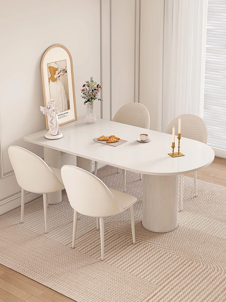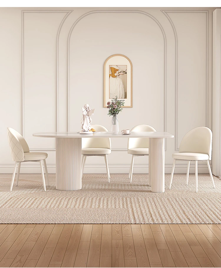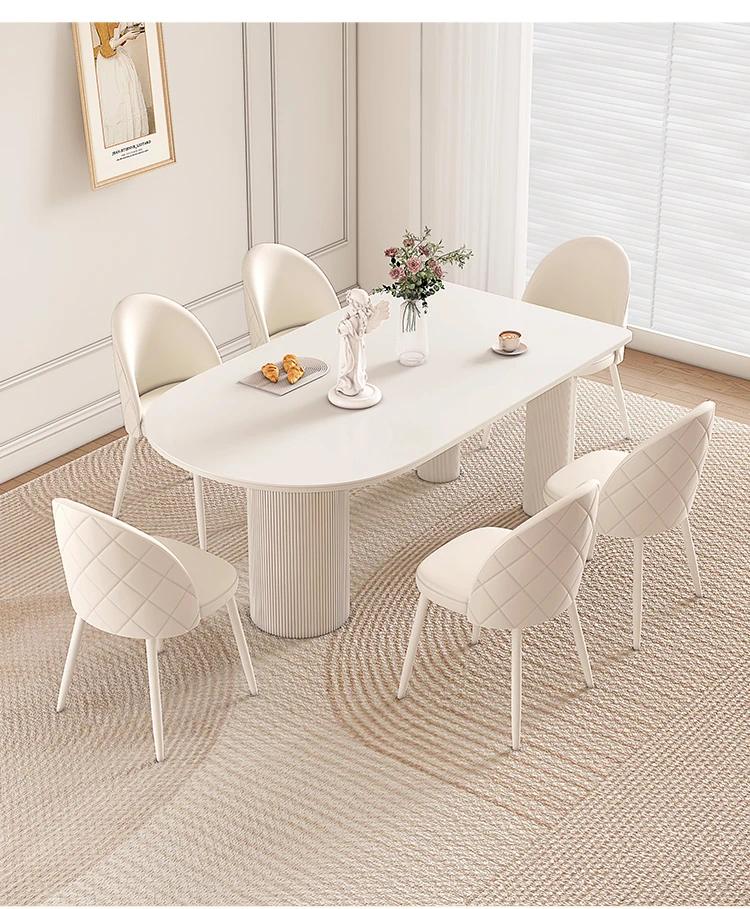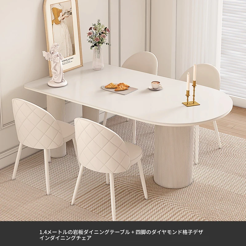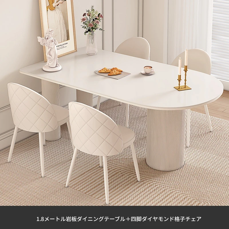 純白の岩板ダイニングテーブル 1.8M*0.9M*0.75M+ダイヤモンドパターンのダイニングチェア*4