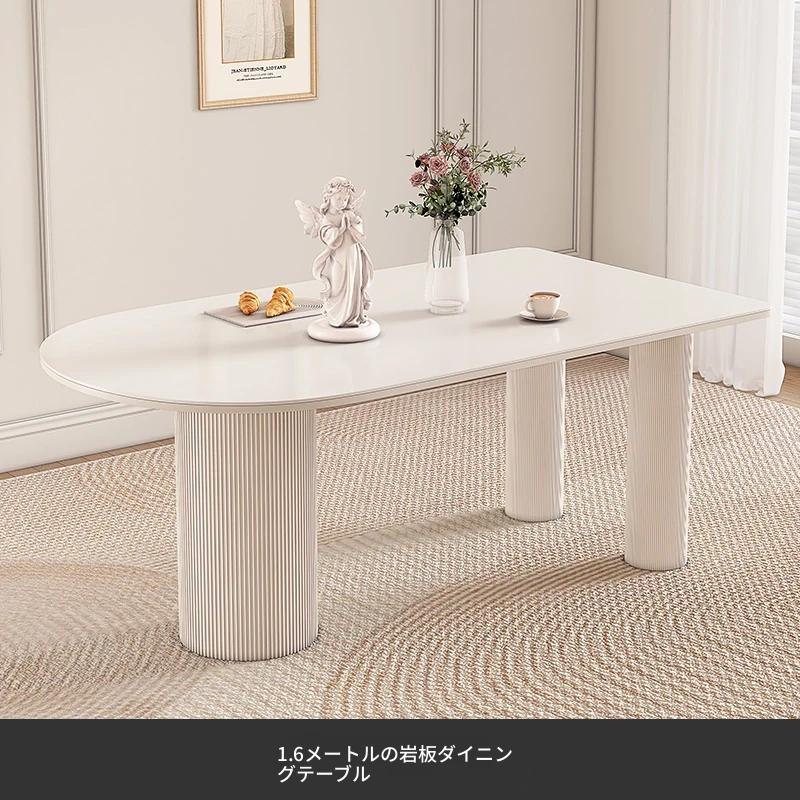 純白の岩板ダイニングテーブル 1.6M*0.8M*0.75M【ベースプレート付き】