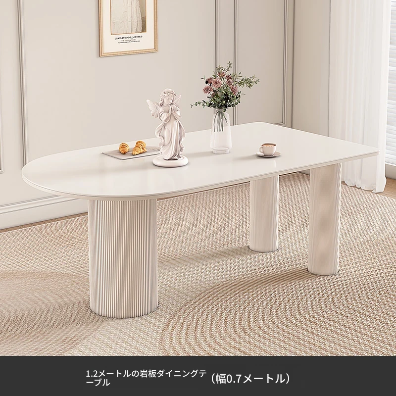 純白の岩板ダイニングテーブル 1.2M*0.7M*0.75M【ベースプレート付き】