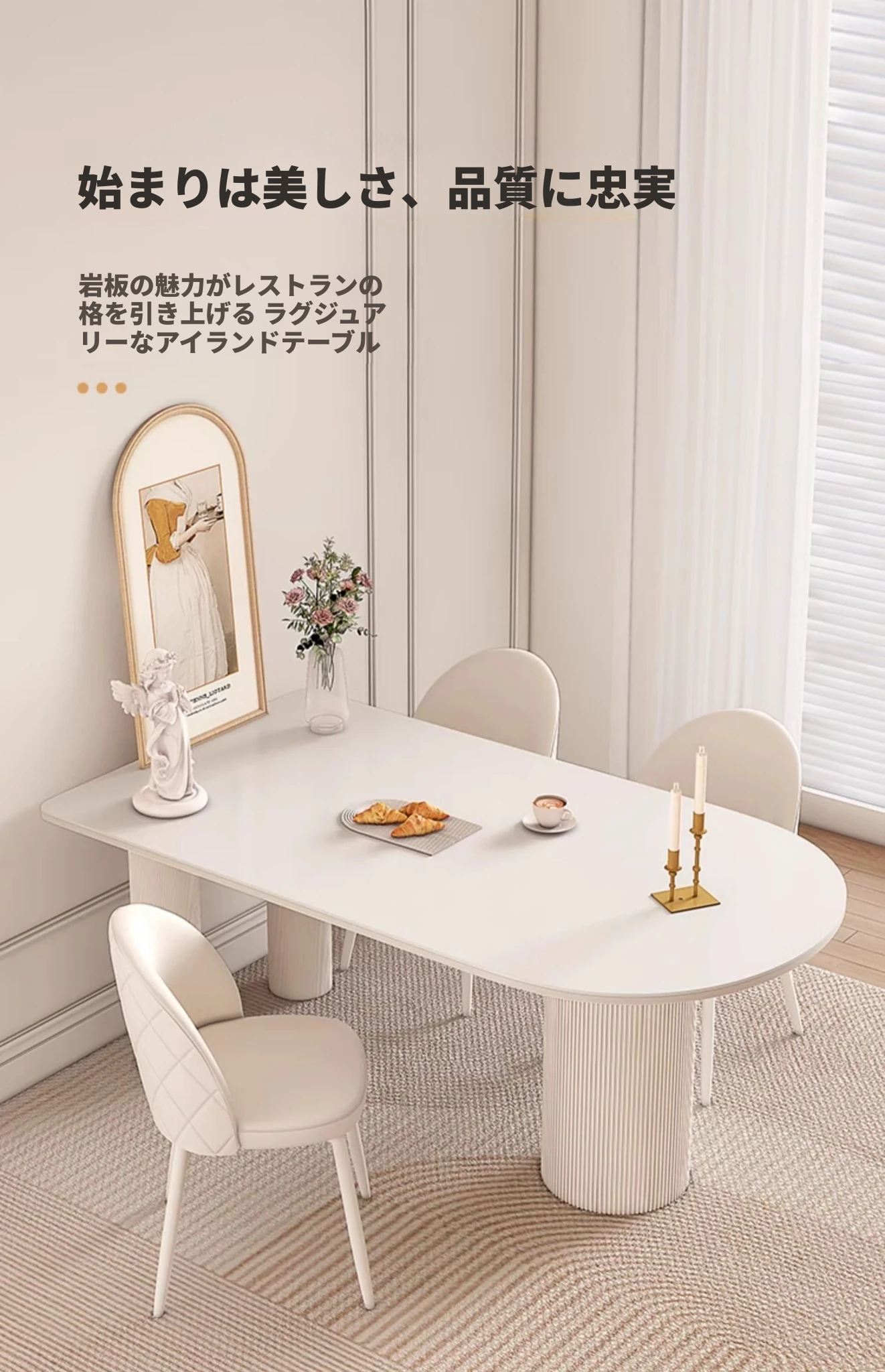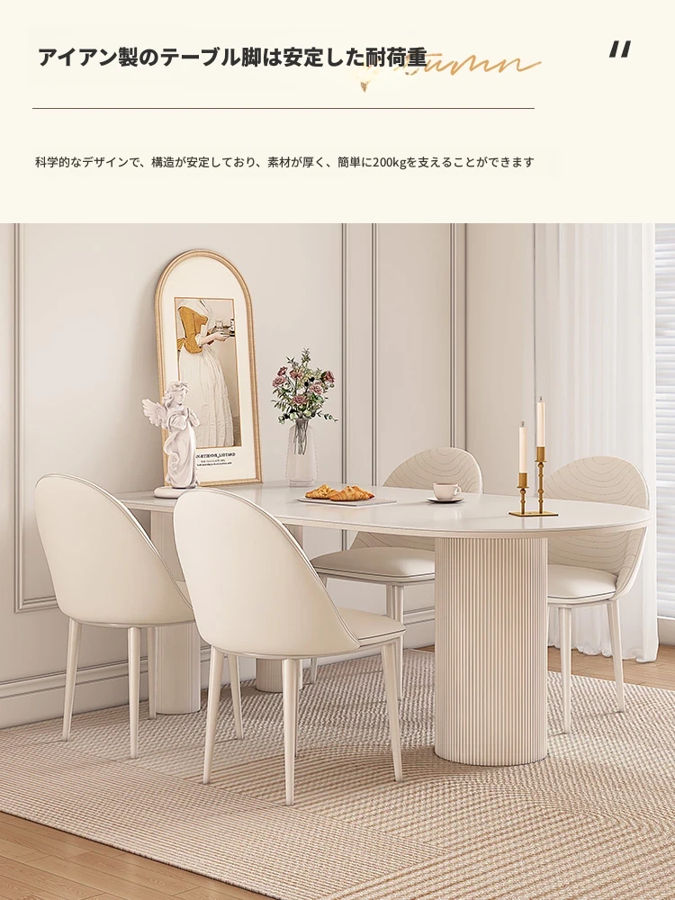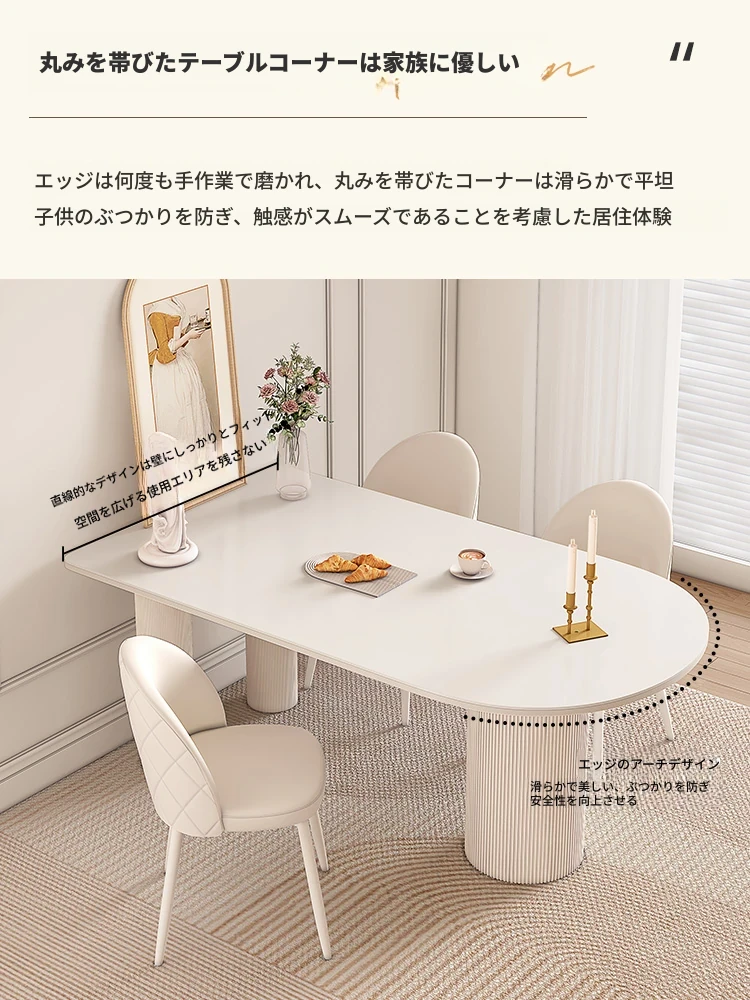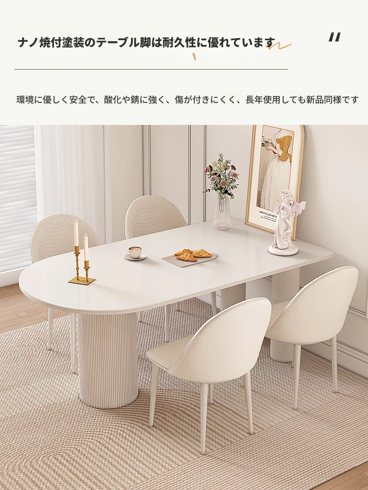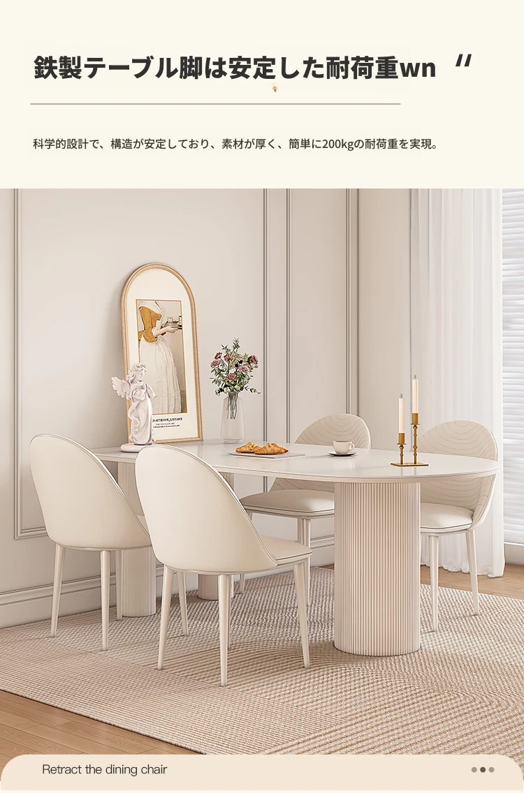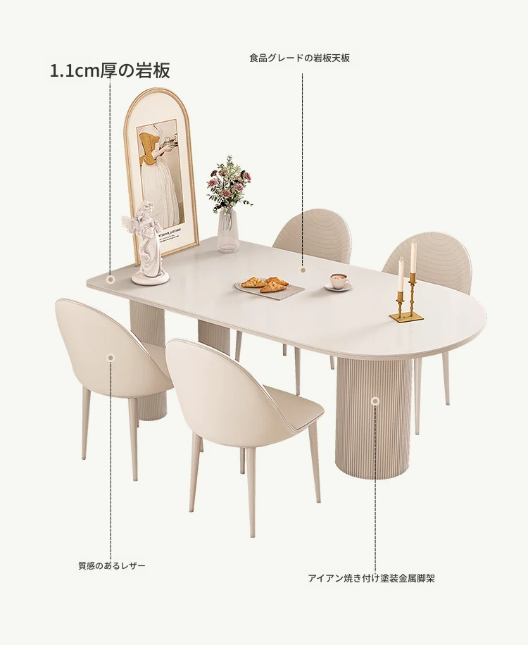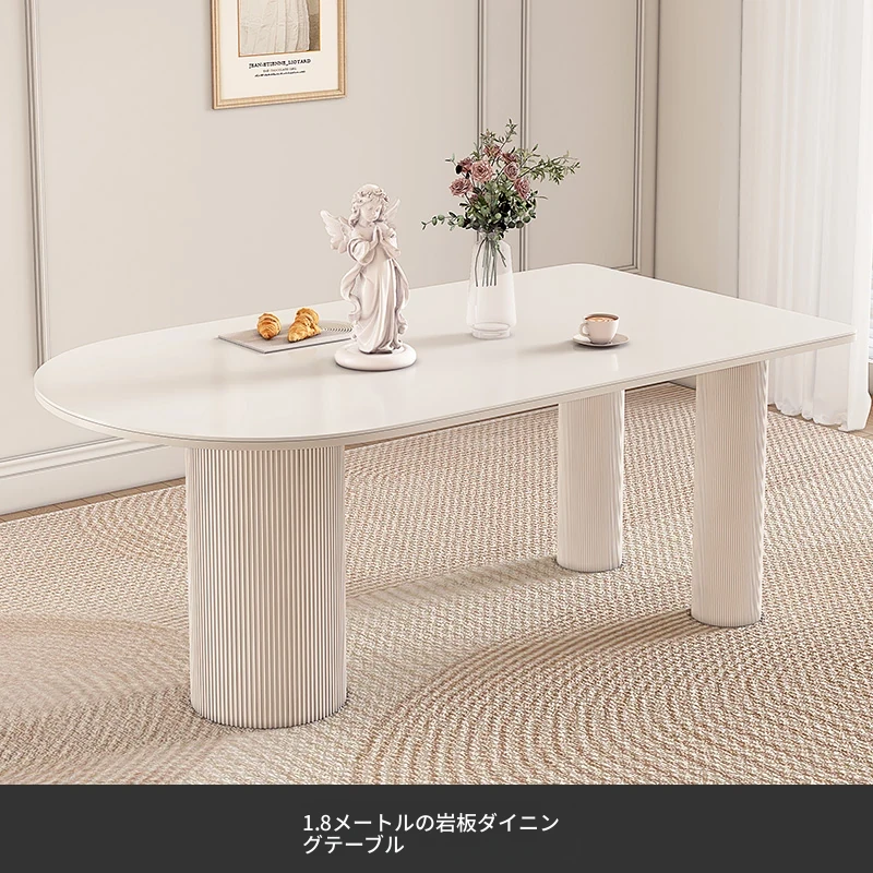 純白の岩板ダイニングテーブル 1.8M*0.9M*0.75M【ベースプレート付き】