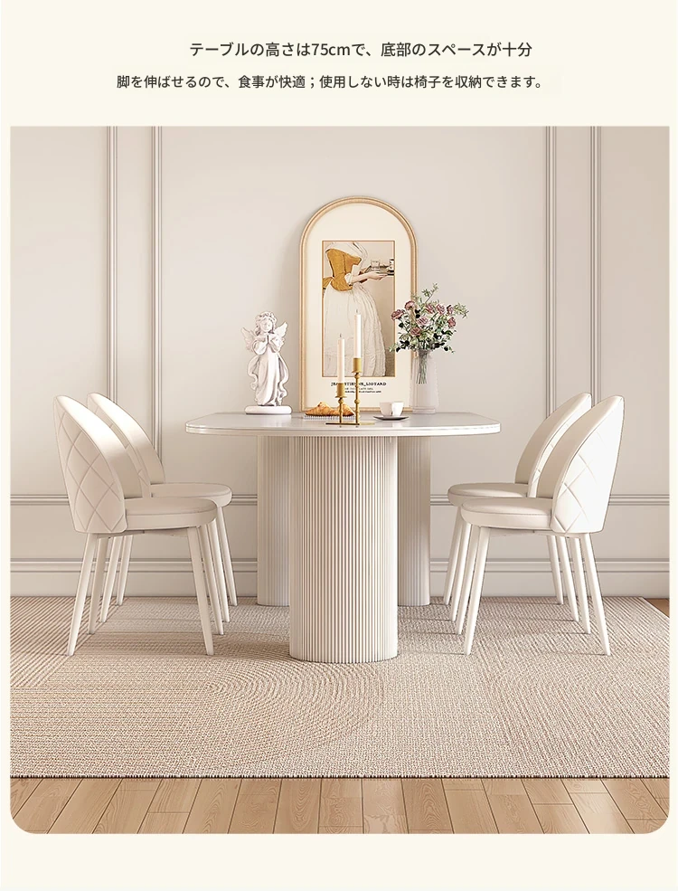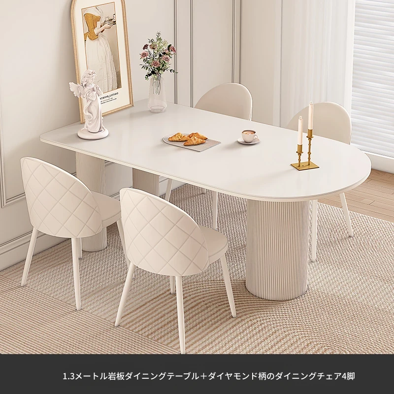 純白の岩板ダイニングテーブル 1.3M*0.8M*0.75M+ダイヤモンドパターンのダイニングチェア*4