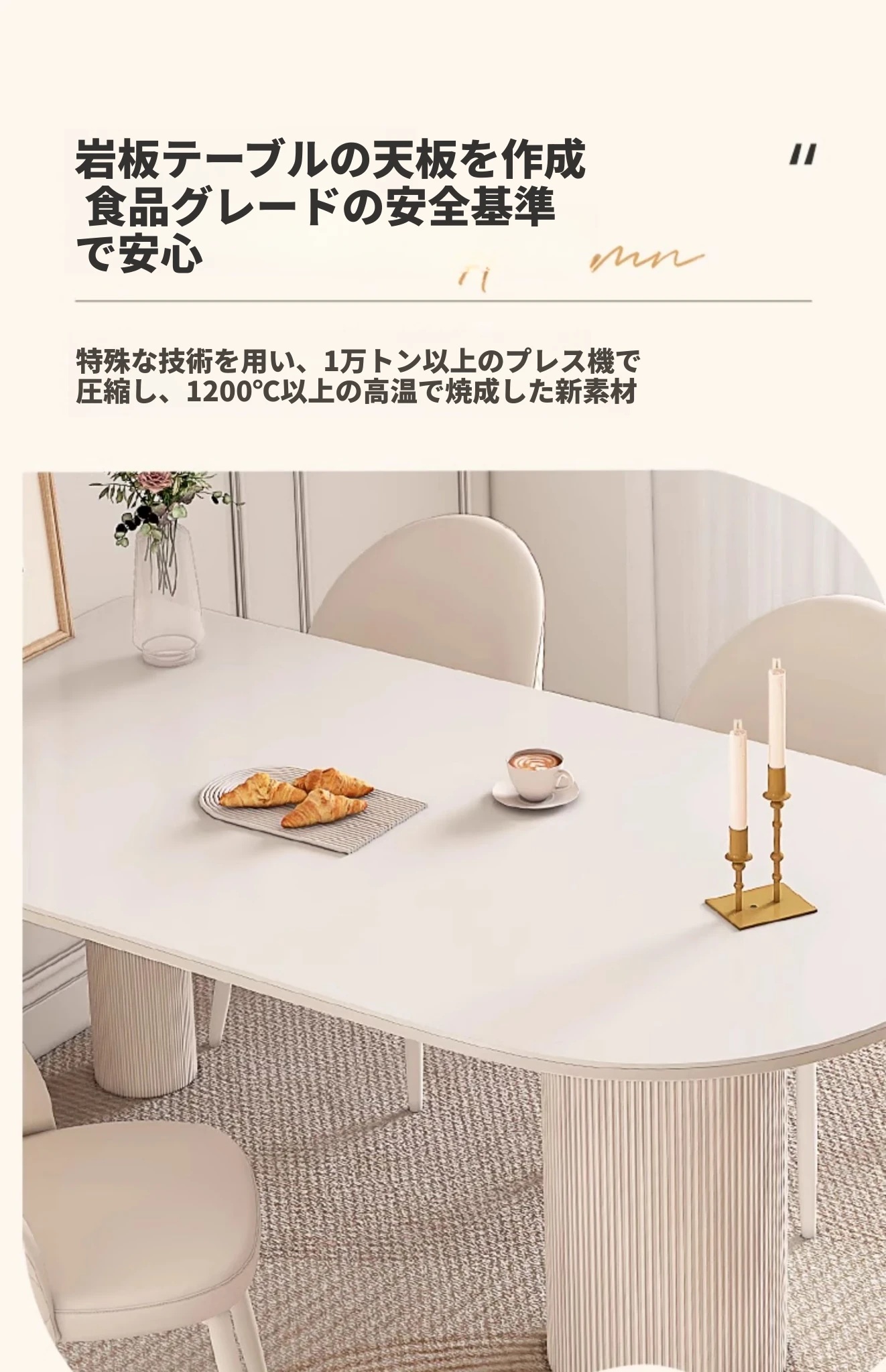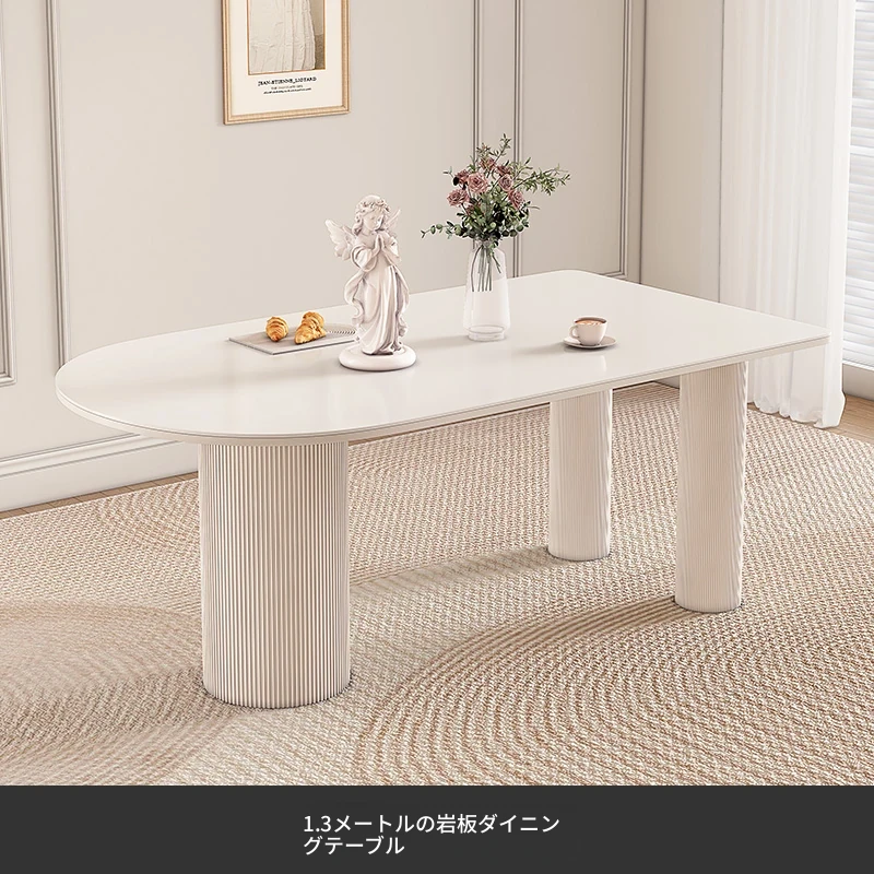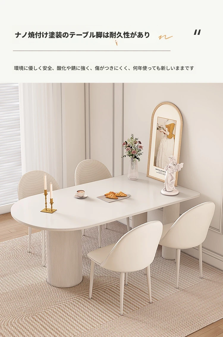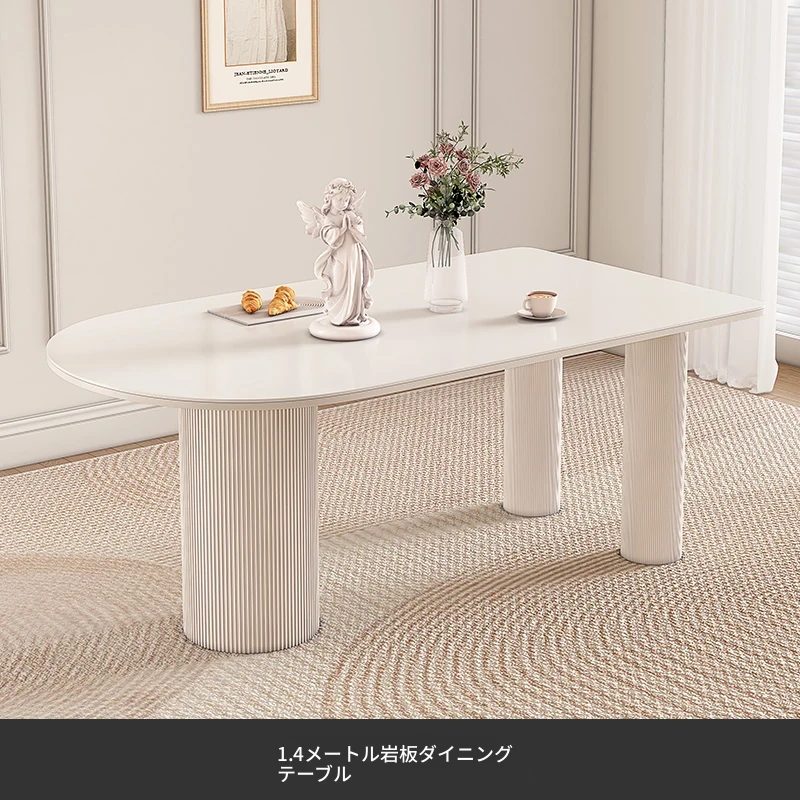 純白の岩板ダイニングテーブル 1.4M*0.8M*0.75M【ベースプレート付き】