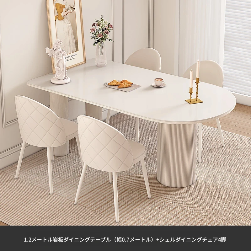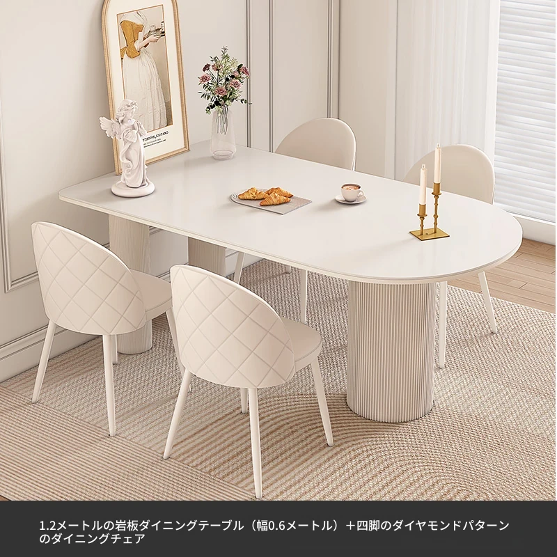 純白の岩板ダイニングテーブル 1.2M*0.6M*0.75M+ダイヤモンドパターンのダイニングチェア*4
