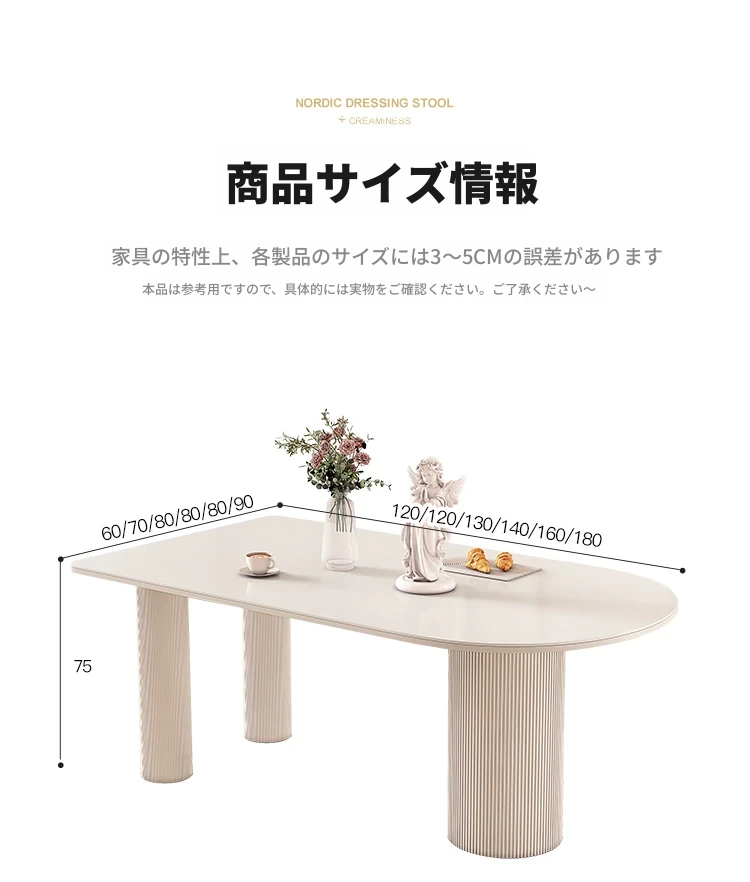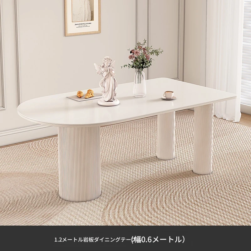 純白の岩板ダイニングテーブル 1.2M*0.6M*0.75M【ベースプレート付き】