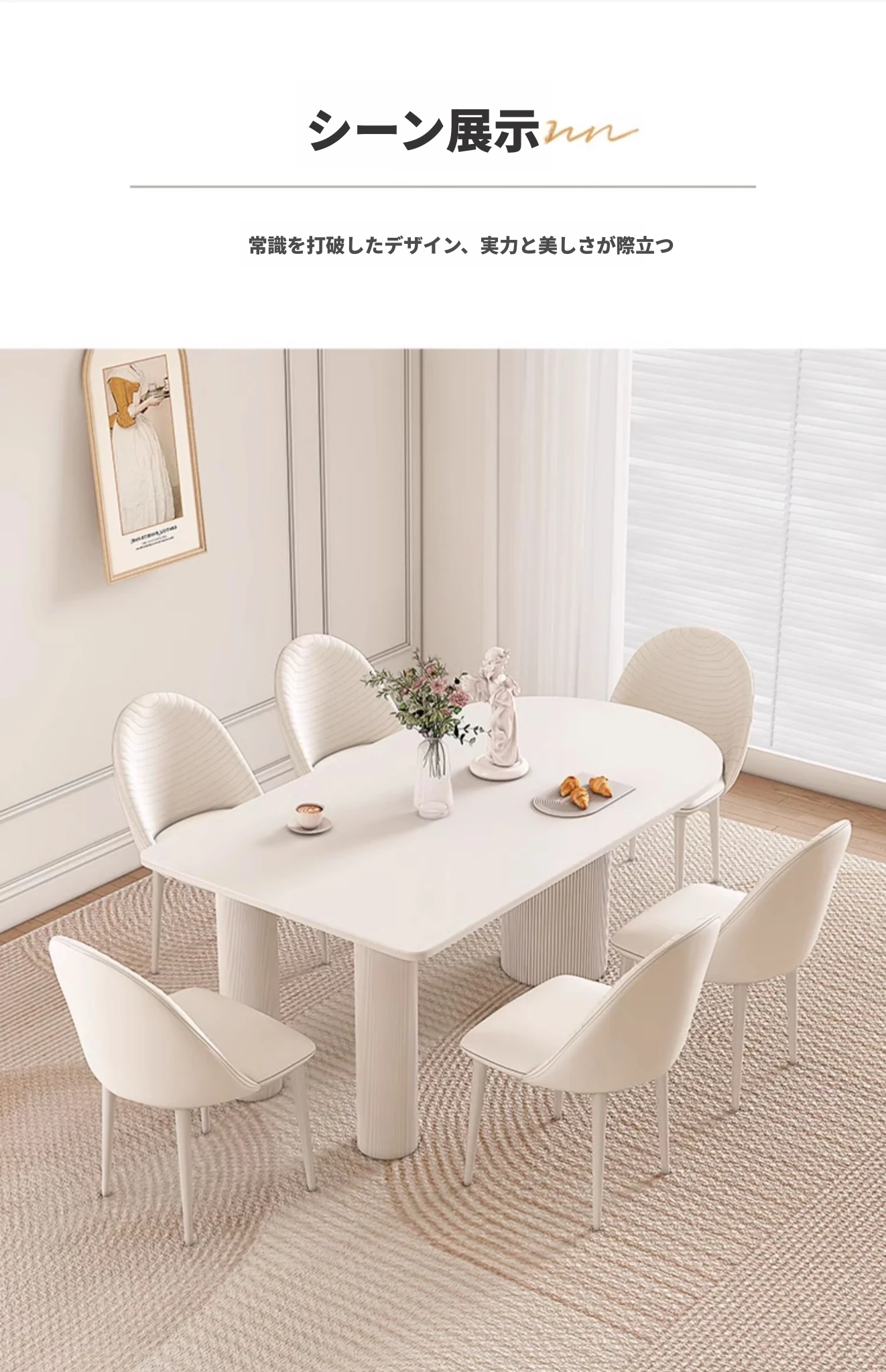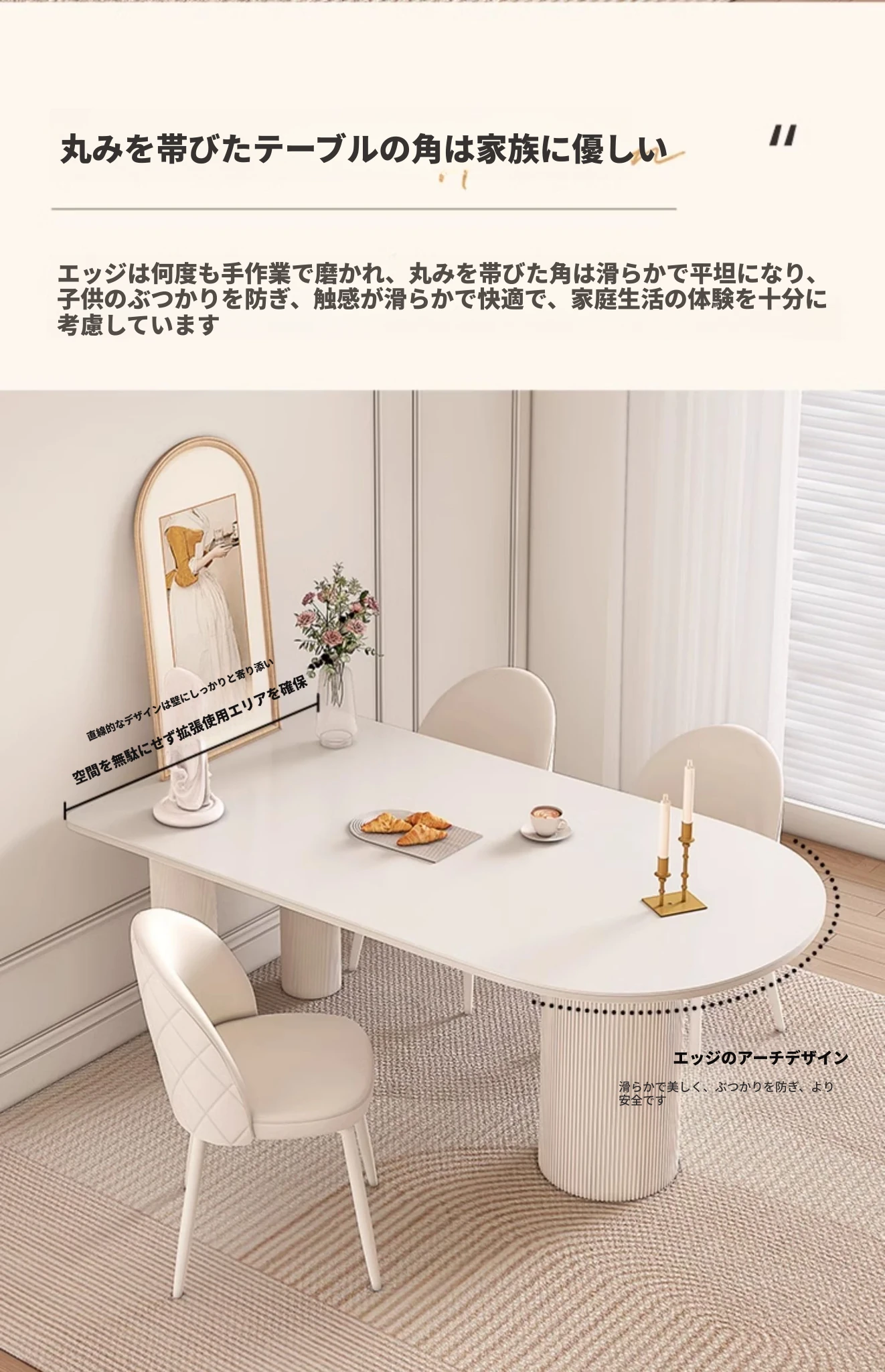 2024年新作!小户型にぴったりな現代的シンプルデザインのアイランドテーブル一体型クリーム風ダイニングテーブル&チェアセット。おしゃれで機能的な食卓を手に入れて、素敵な食事の時間を楽しもう!