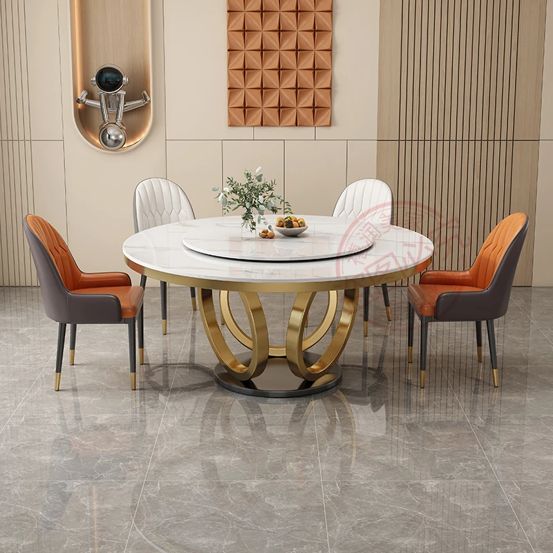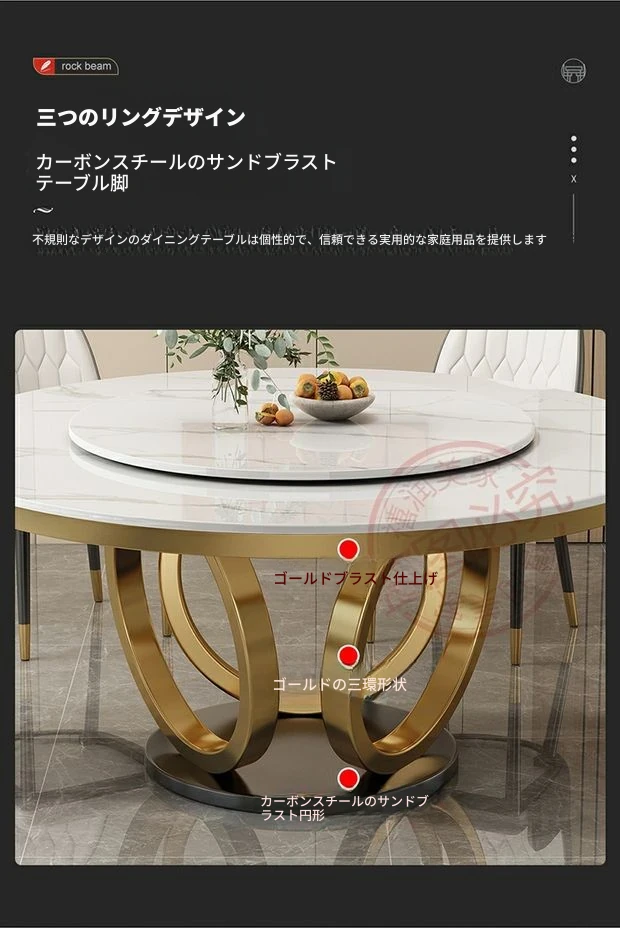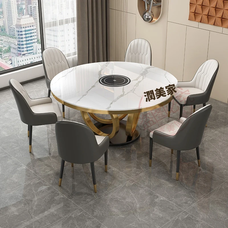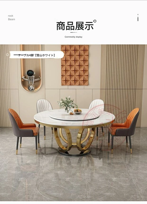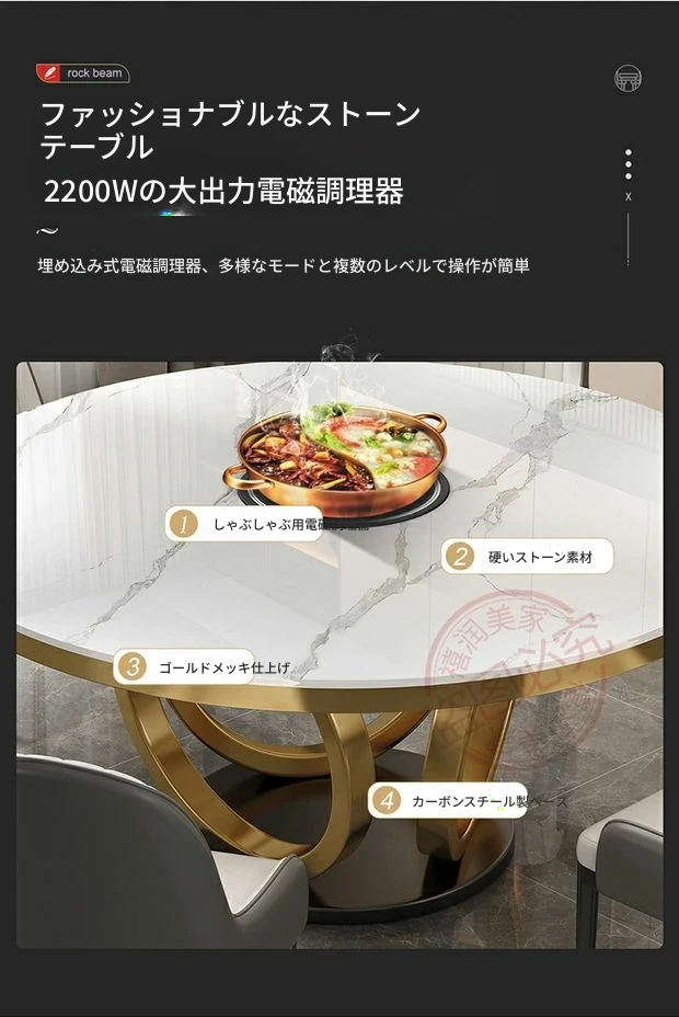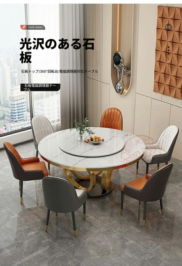 軽奢感あふれる大理石テーブルセット|モダンでシンプルなデザイン|家庭用・大中小型物件にぴったり|電磁調理器付きのラウンドダイニングテーブルで、食事をもっと特別に!