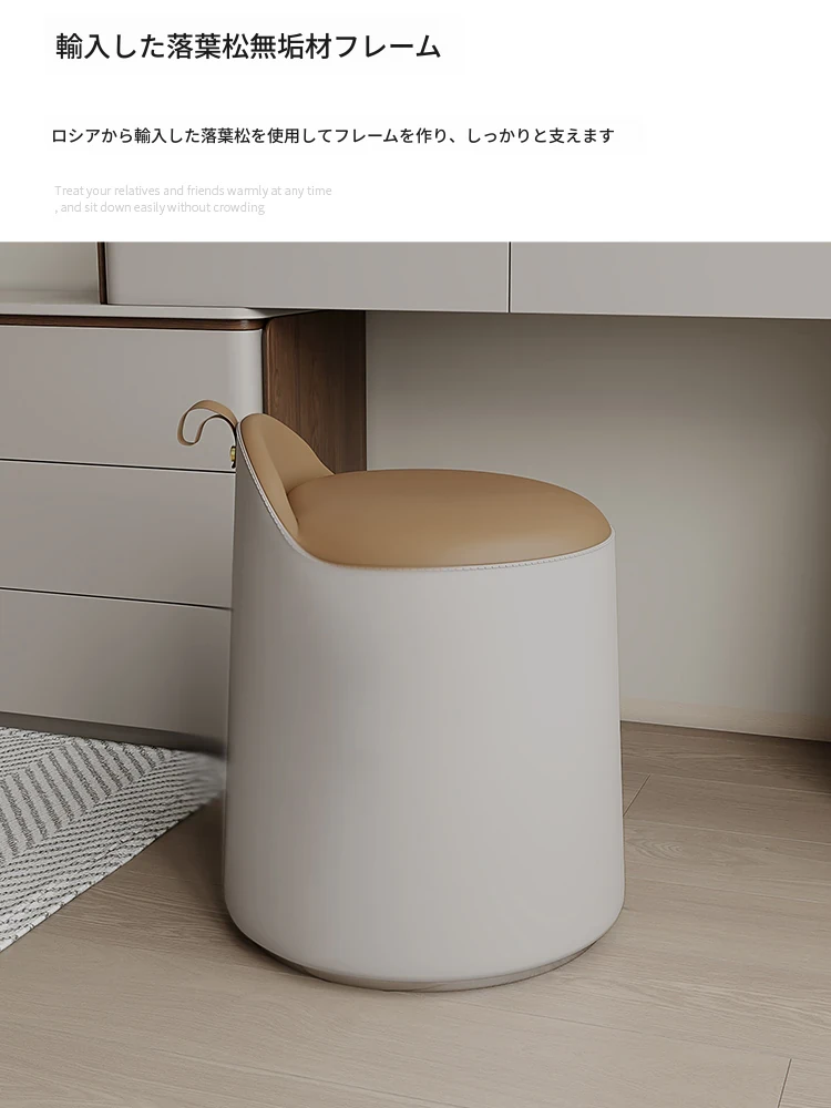 モダンシンプルな化粧台椅子|2025年新作|実木製の女性専用ドレッサースツール|おしゃれな寝室にぴったり!
