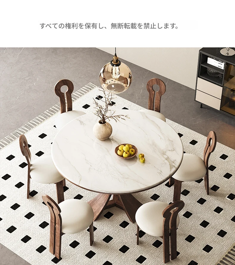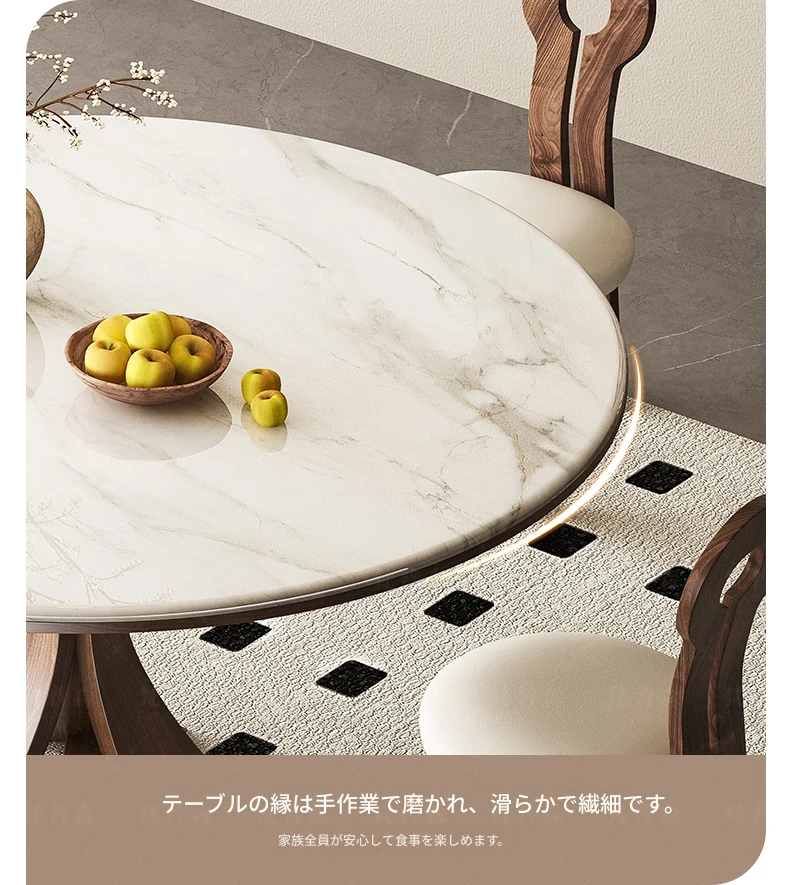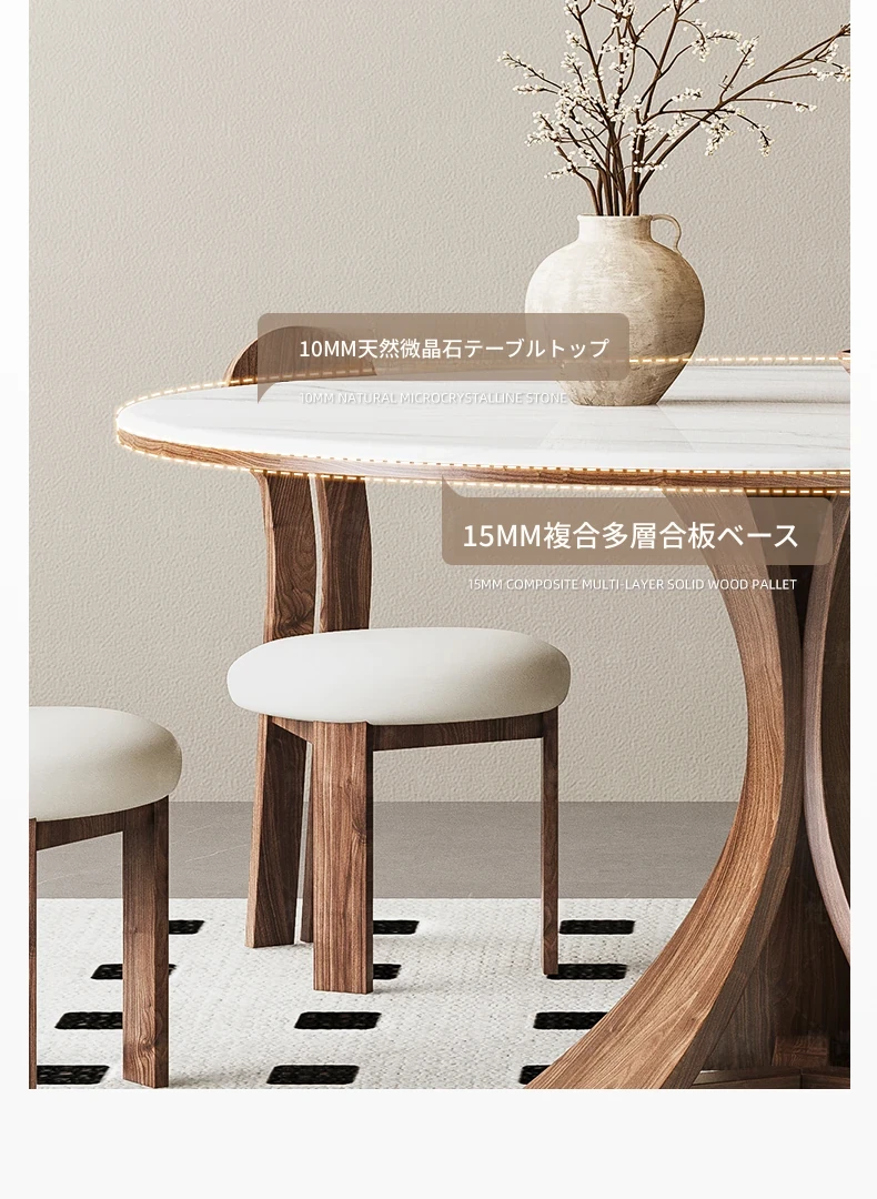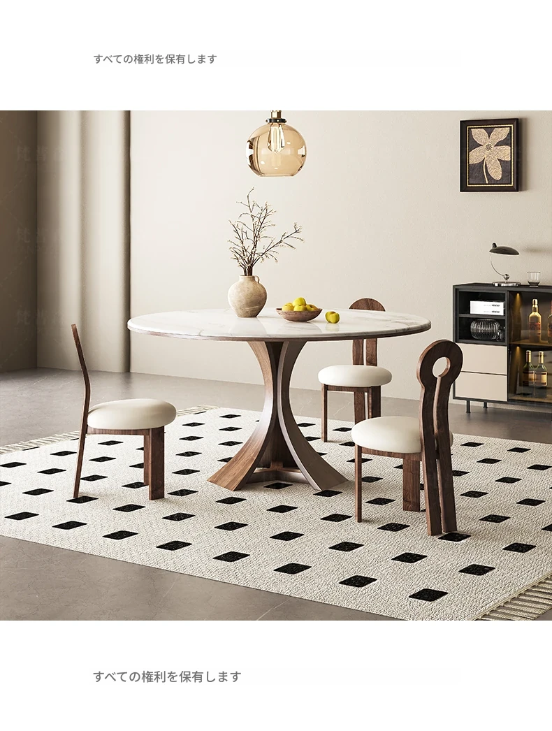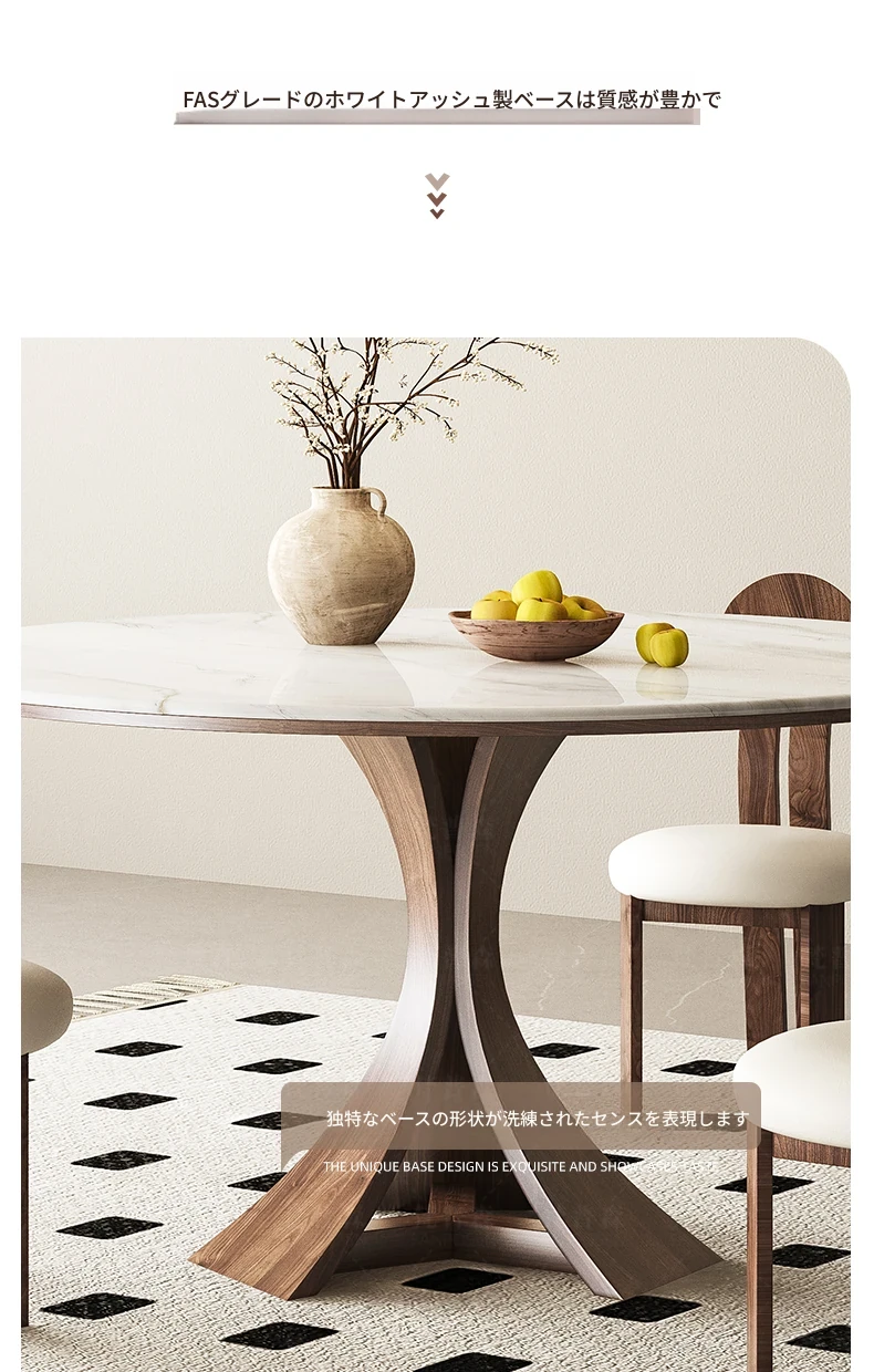 大理石と無垢材のコンビネーション!現代的でシンプルなデザインの円形ダイニングテーブルセット。小さなスペースにもぴったりの高級感漂うテーブルとチェアの組み合わせ。おしゃれな食卓で特別なひとときを演出!