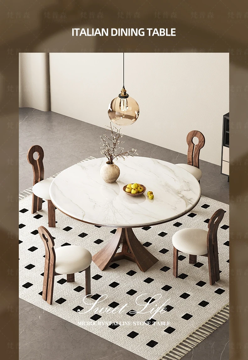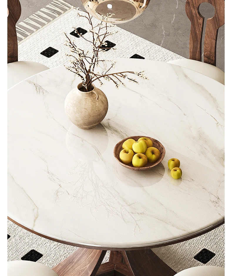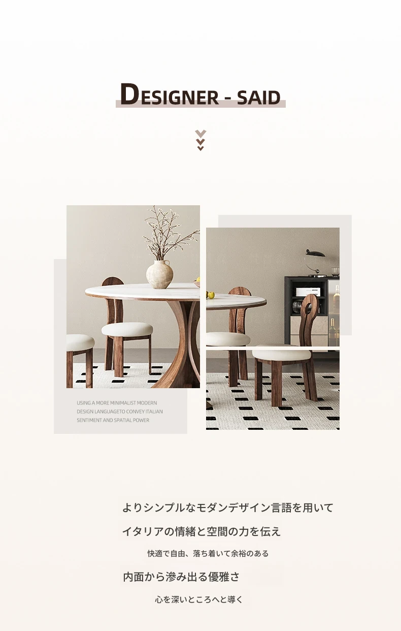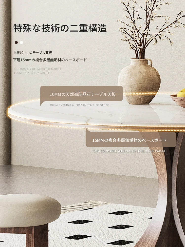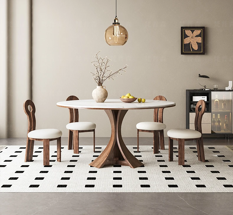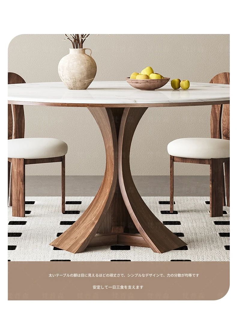 大理石と無垢材のコンビネーション!現代的でシンプルなデザインの円形ダイニングテーブルセット。小さなスペースにもぴったりの高級感漂うテーブルとチェアの組み合わせ。おしゃれな食卓で特別なひとときを演出!