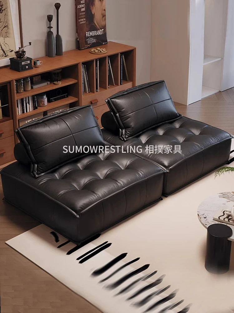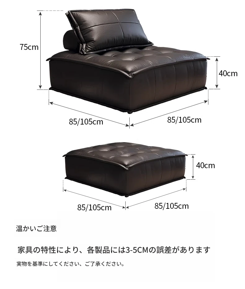 モジュール式ソファ ブラック シングルキューブ ピエモンテ ソファ 豆腐ブロック 本革ソファ 小型住宅向け コンパクトな組み合わせでおしゃれなリビング空間を演出!