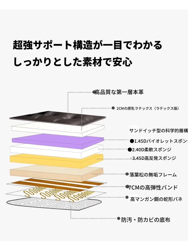 シングル105*105幅【悦享ラテックス版・全真皮厚手トップレザー】