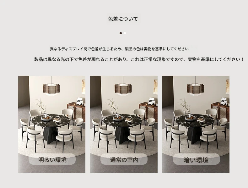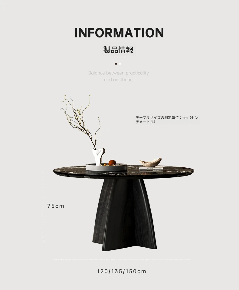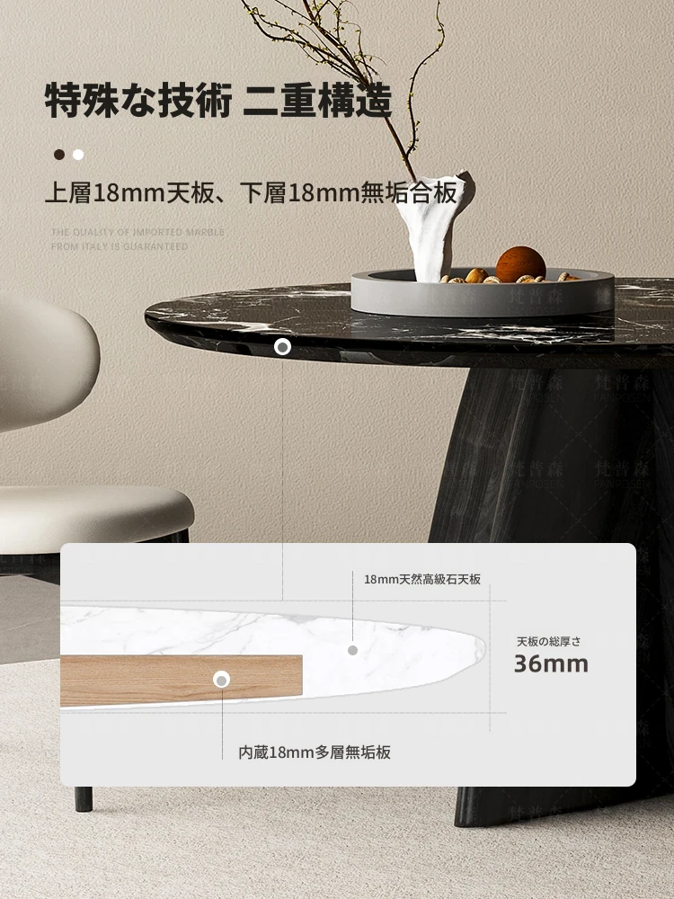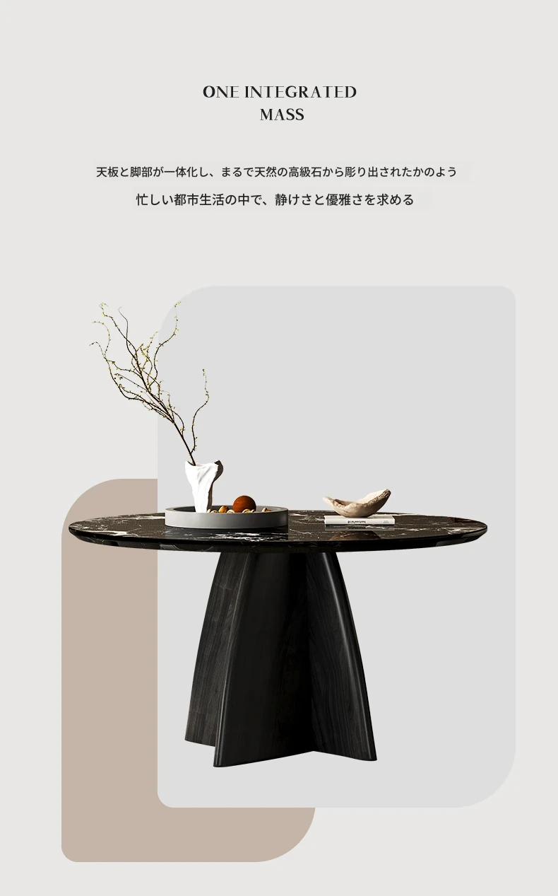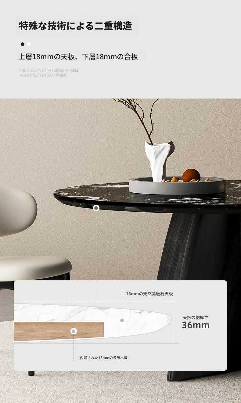 ブラックローズ高級石製ダイニングテーブル+回転台