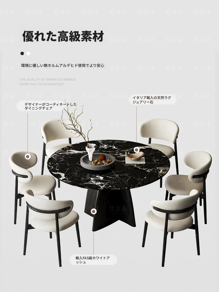ブラックローズ高級石製ダイニングテーブル + カーシート椅子*6