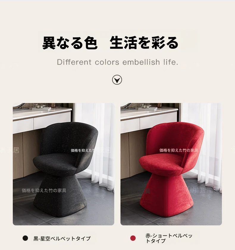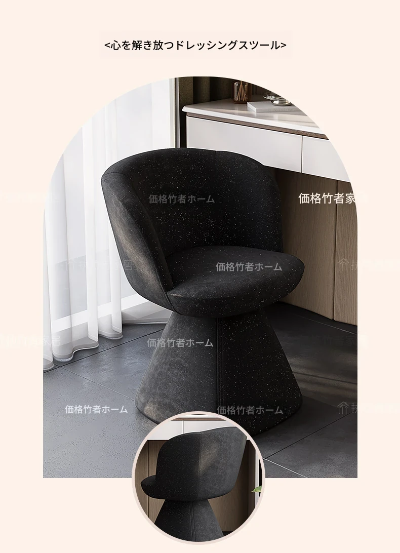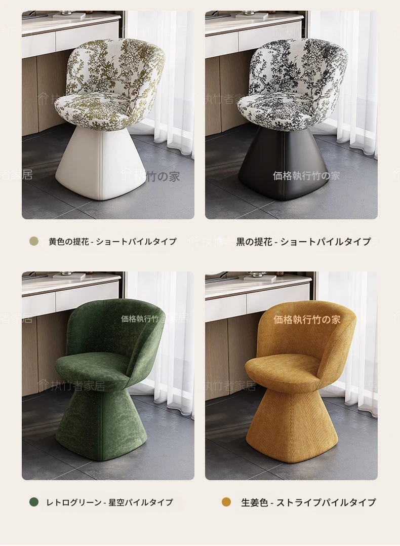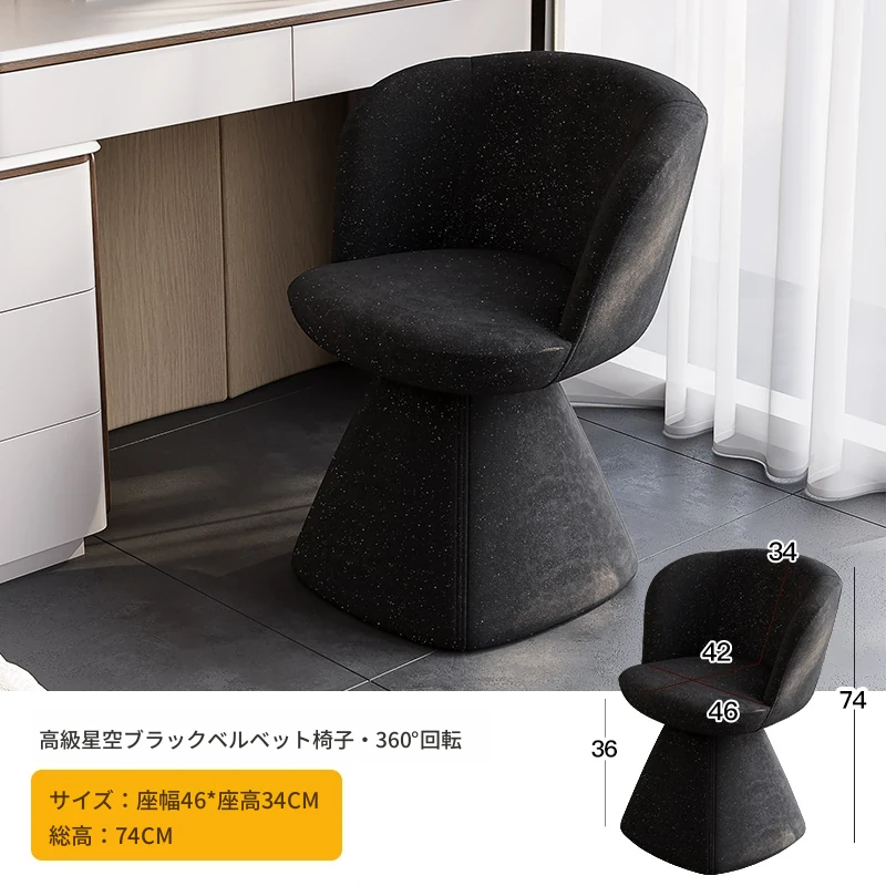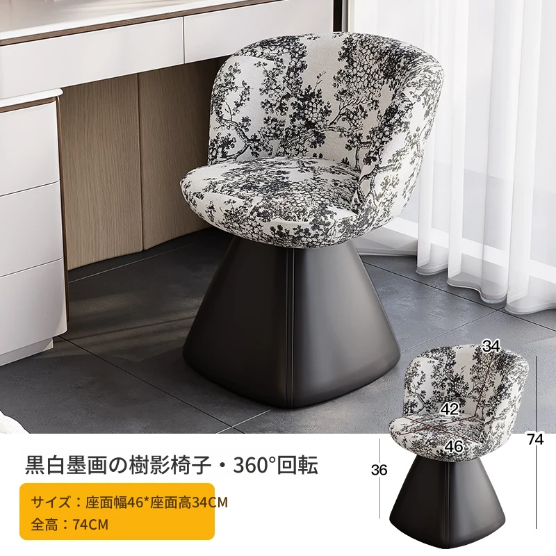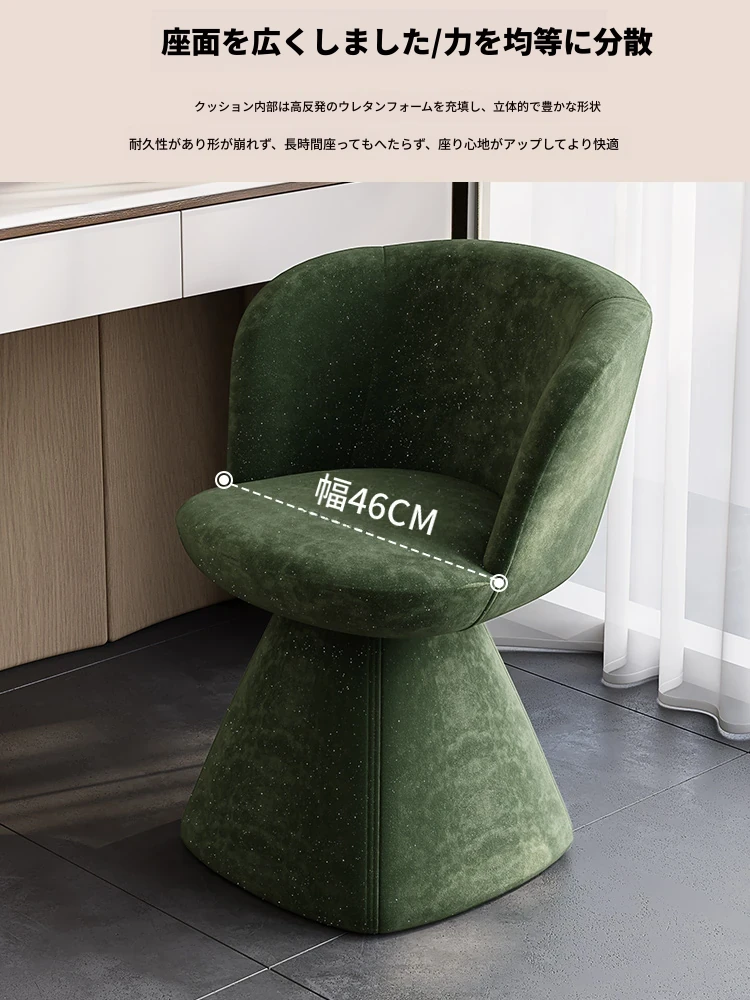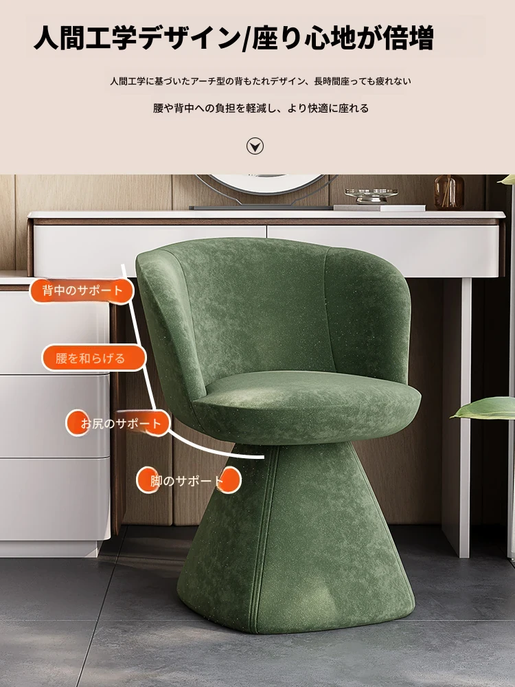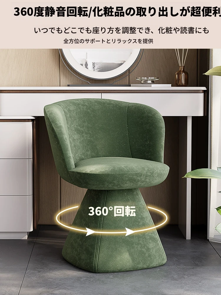 北欧デザインの高級化粧椅子 - 回転式バックレスト付き、洗練された軽奢スタイル。自宅の化粧台に最適な、快適でスタイリッシュなコスメチェア。あなたの美しさを引き立てるアイテム!