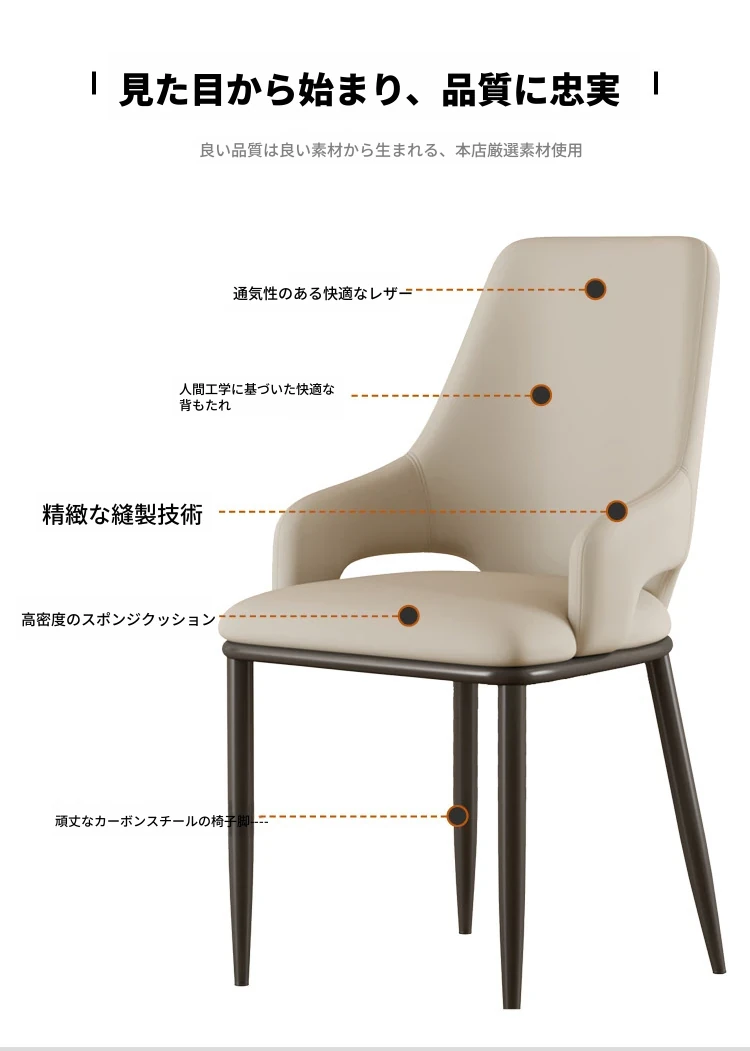 北欧スタイルの高級イタリアンダイニングテーブル&チェアセット - モダンでシンプルなデザインのレストラン用背もたれ付きチェア、快適なレザー製ダイニングスツール。自宅やホテルにぴったり!