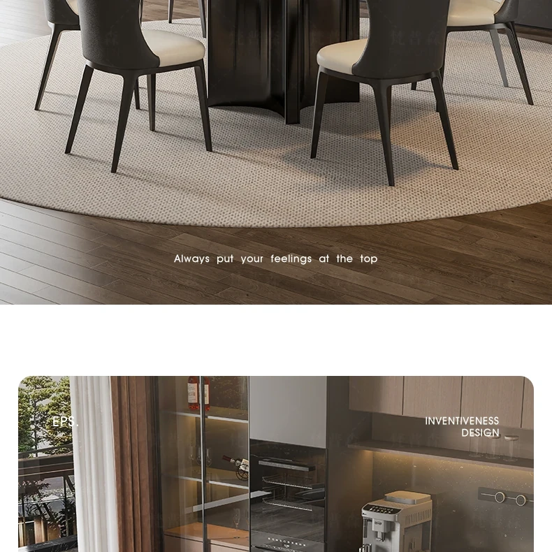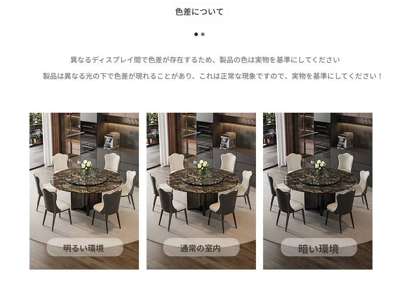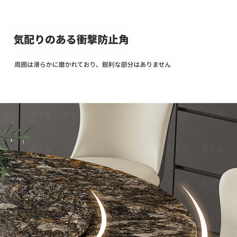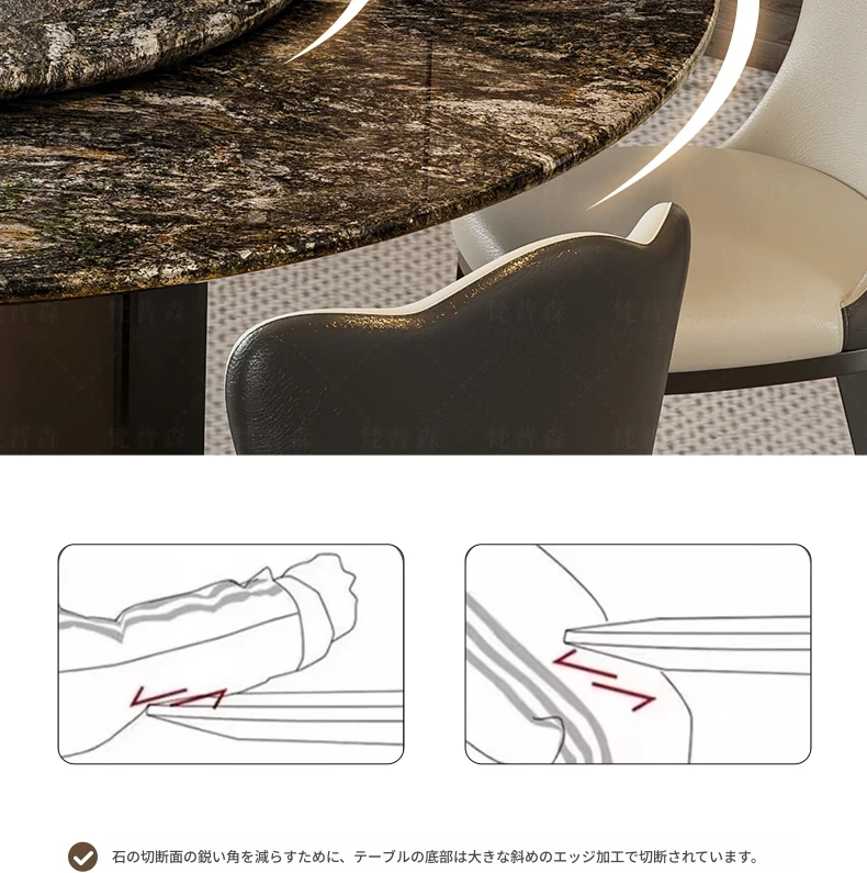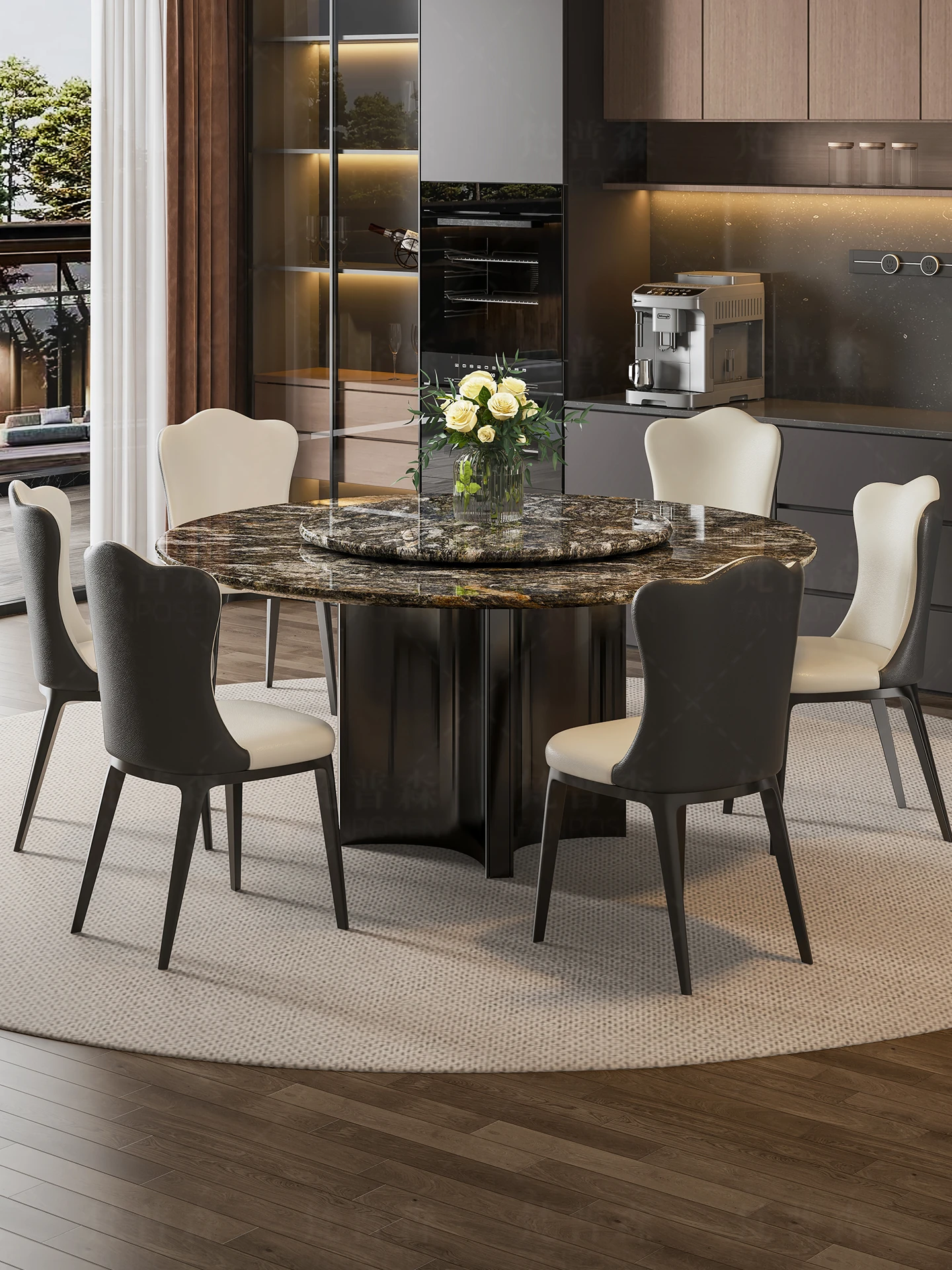 輸入プラチナダイヤモンド天然ラグジュアリー石ダイニングテーブル+ターンテーブル+本革ダイニングチェア*6