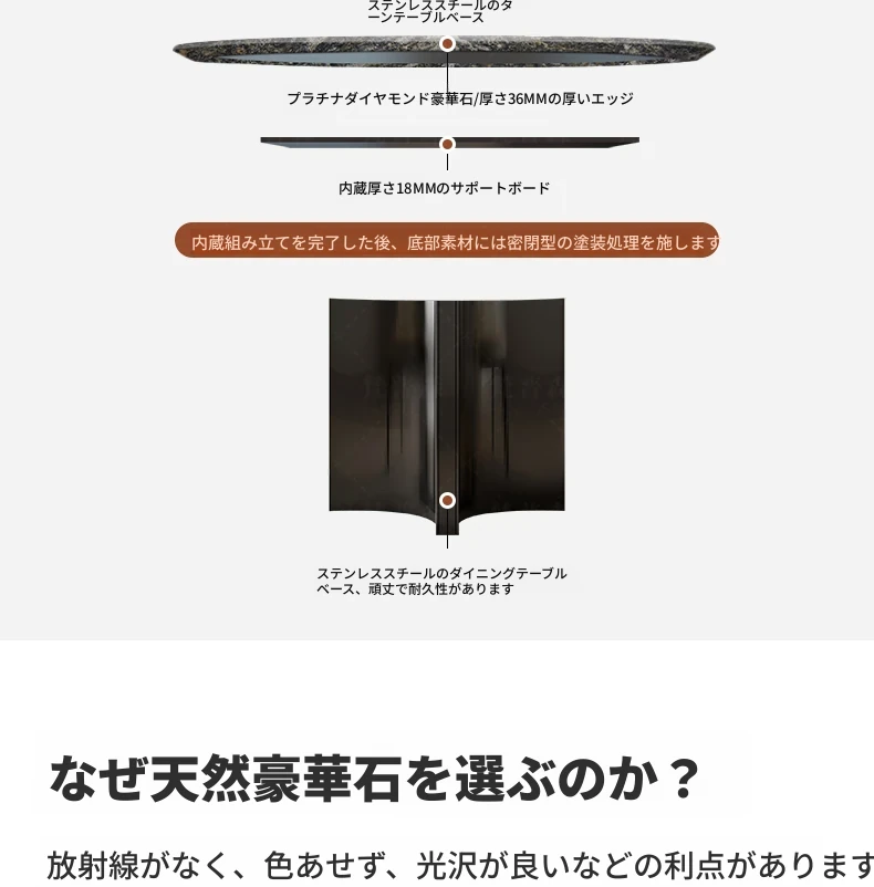 輸入プラチナダイヤモンド天然ラグジュアリー石ダイニングテーブル
